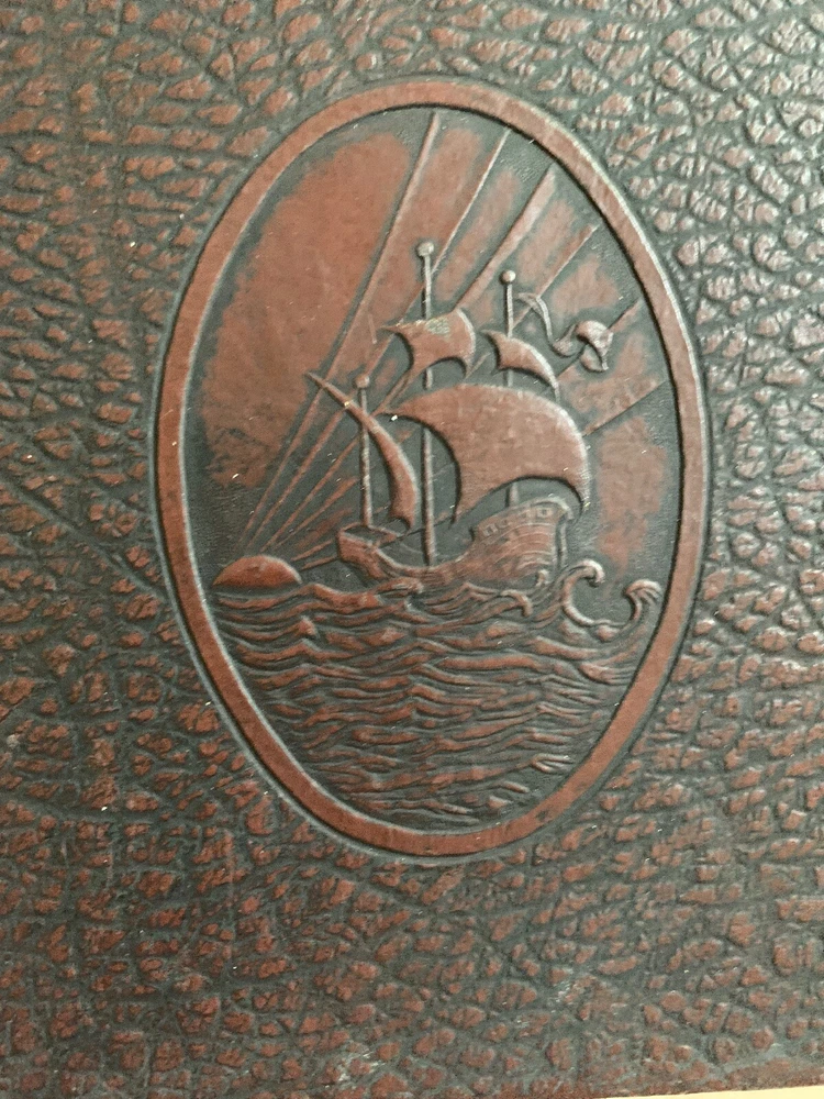 Rare Vintage Genuine Leather DIY Scrapbook Brown With Ship Pic On Cover. Shipped with USPS First Class Package....