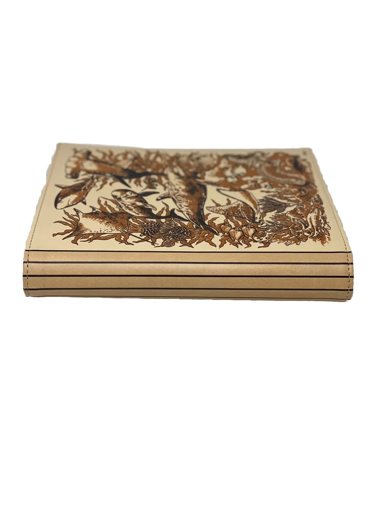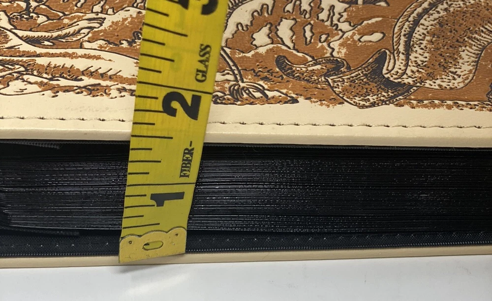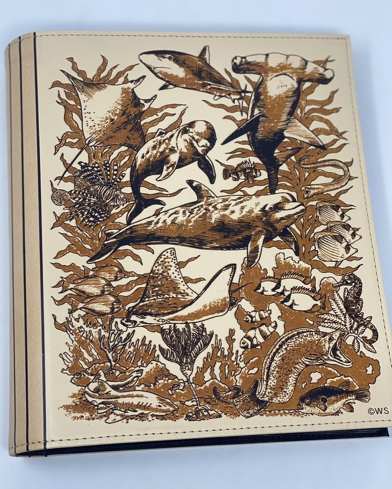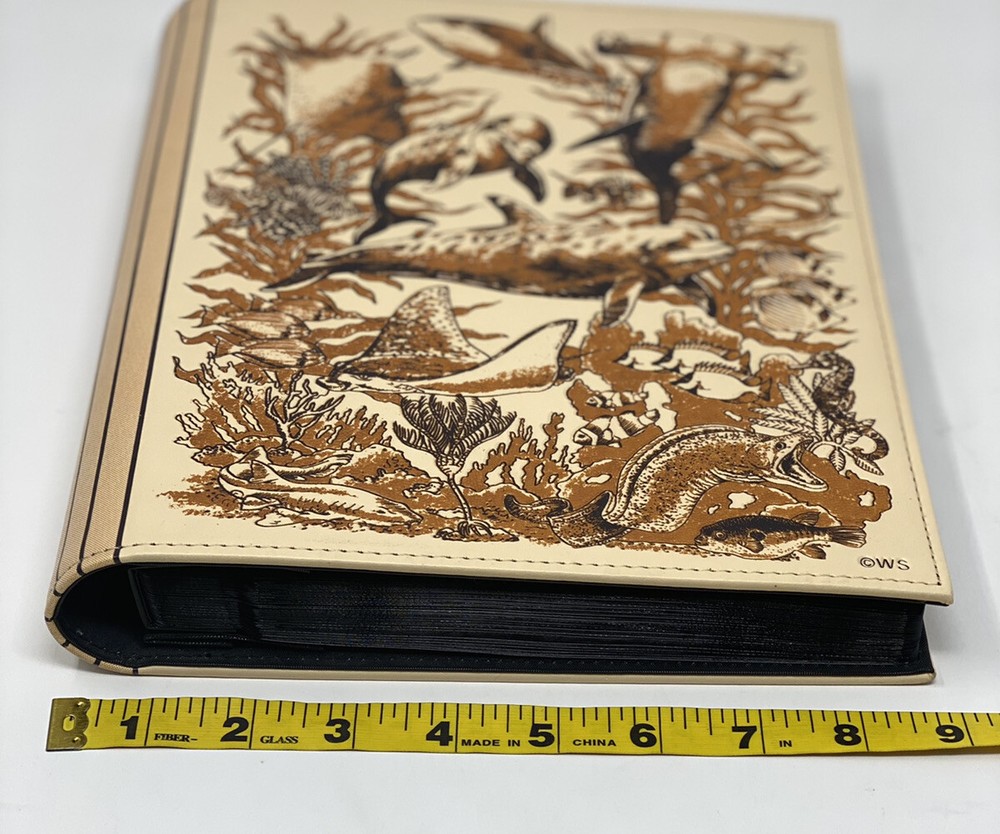 This is a beautiful Leather Photo Album with f200 4x6 sleeves for all your favorite photos. The graphic on the front and back are embossed pictures of different sea life. Amazing Dolphin, Sting Rays, Seahorses, Eel, Sharks. The more you look, the more you find. Fabulous photo album for a fishing, beach or out door vacation. This has never been used. There are paper tags for labeling your photos. Photos reflect excellent condition. 10” x 9” x 1.5” Shipped with USPS Priority Mail or first class mail. Buyer pays shipping.