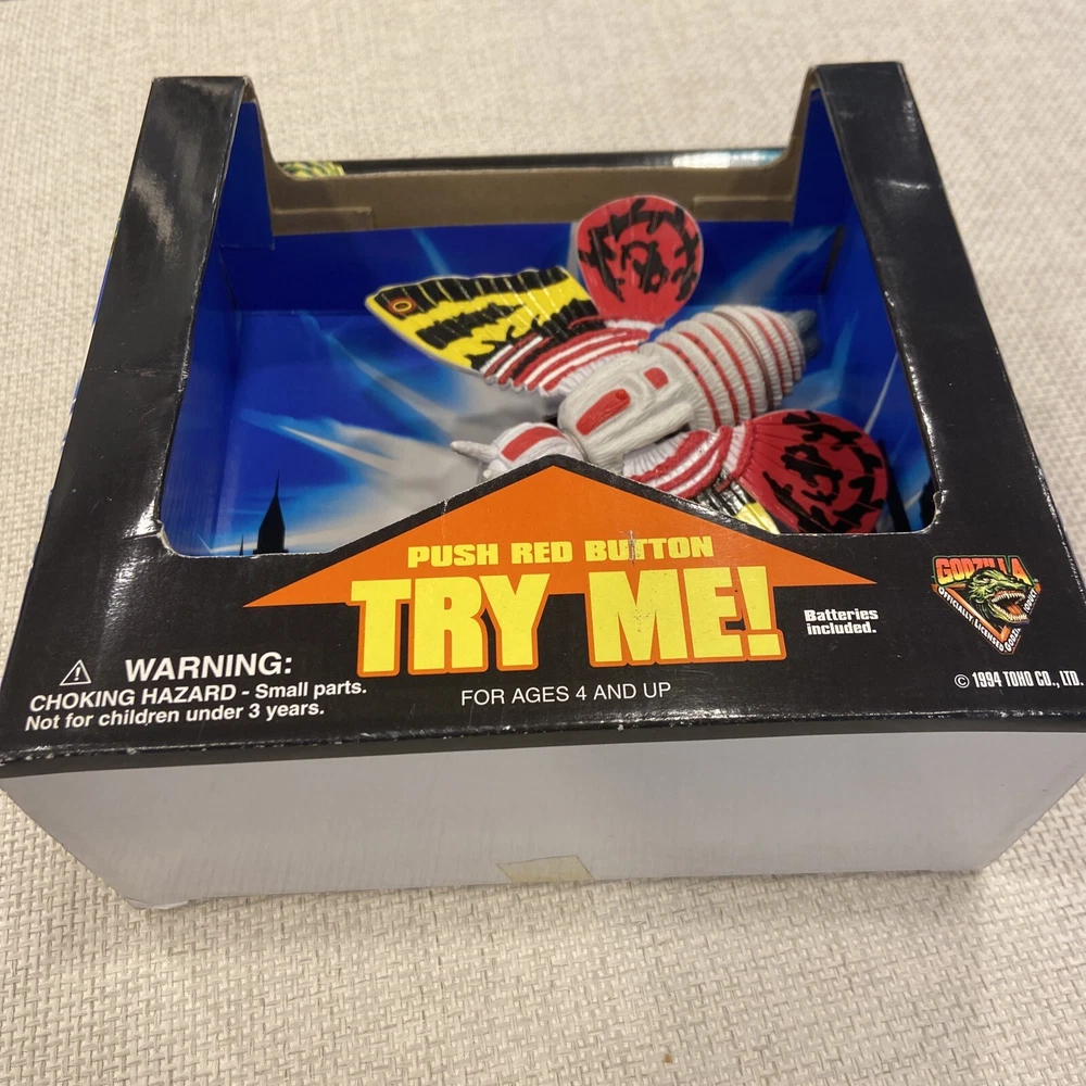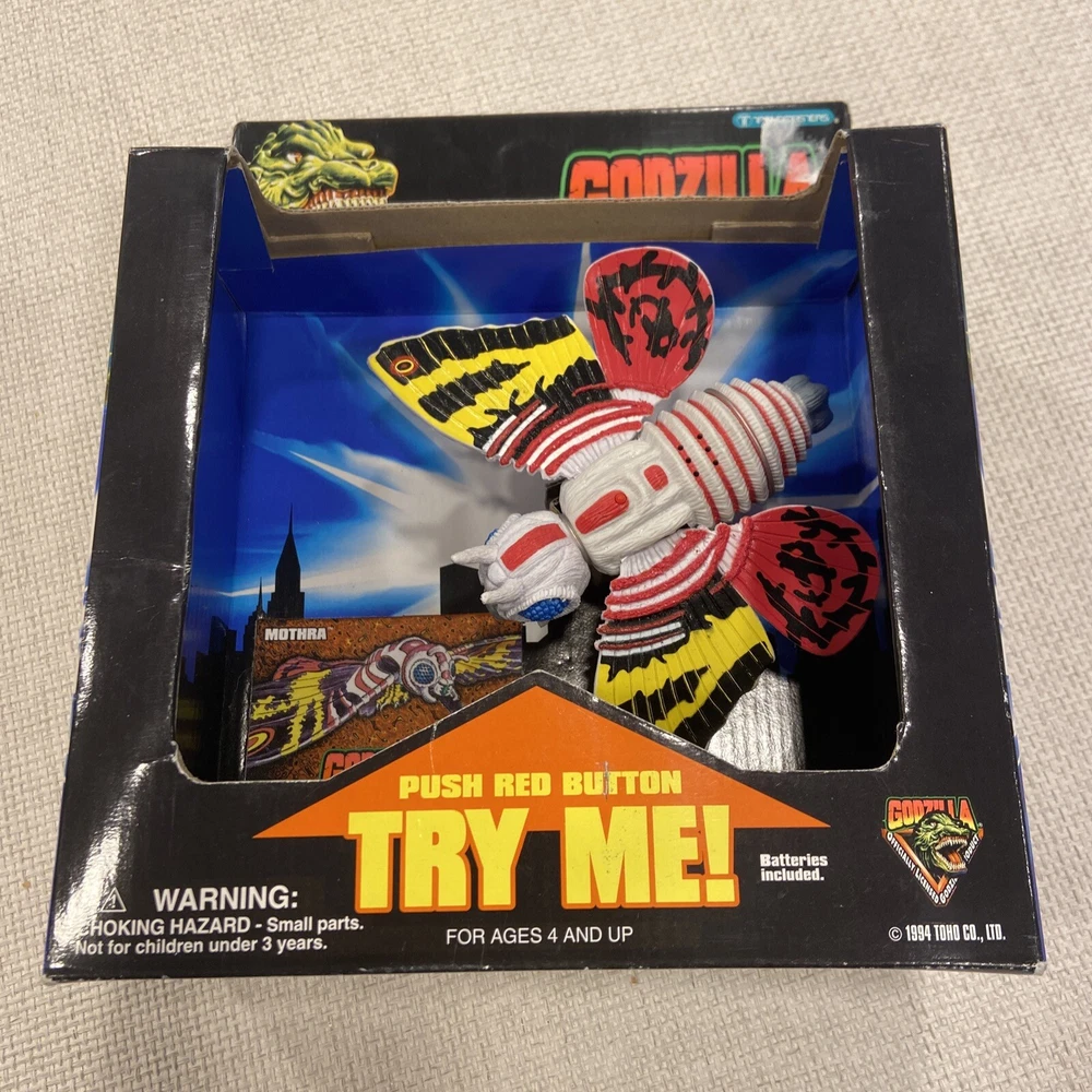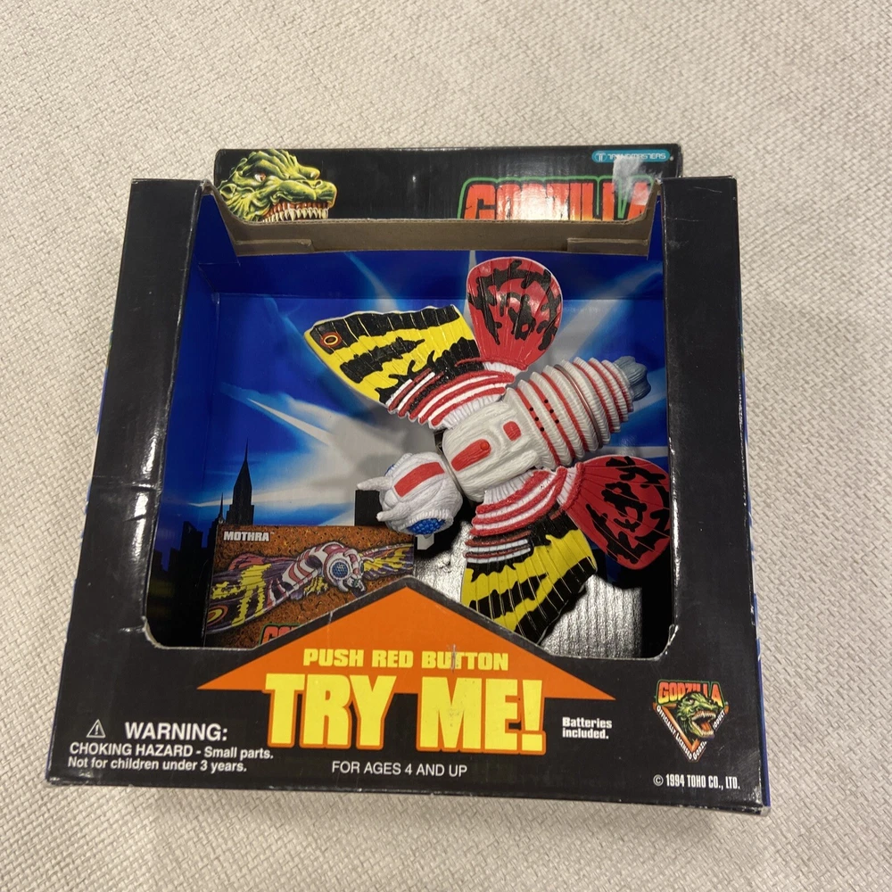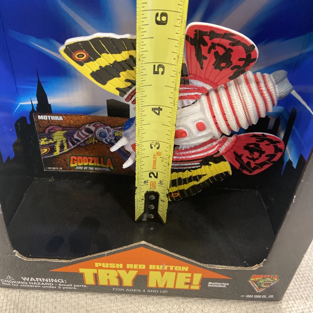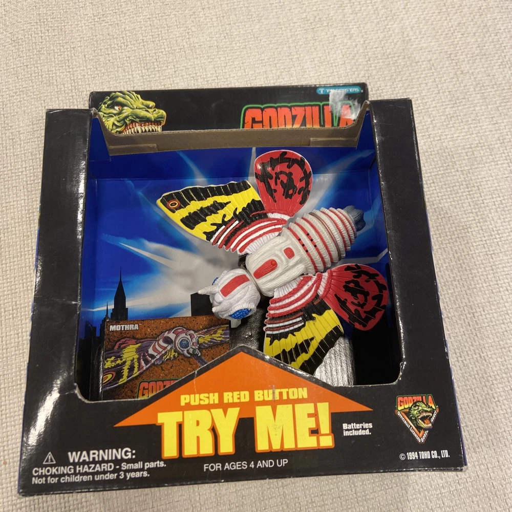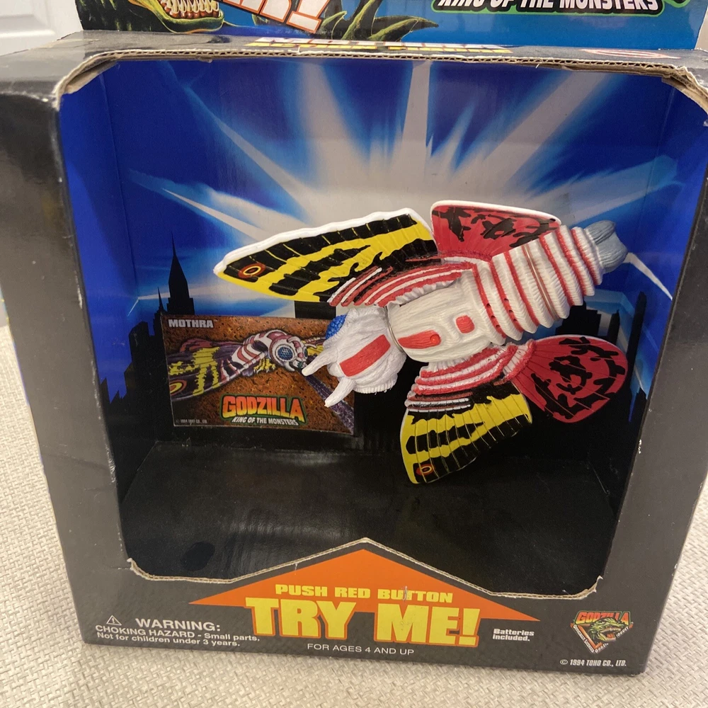 Rare roaring MOTHRA, GODZILLA King Of The Monsters 1994 Trendmasters 6" wide. New Old stock ~ Never Used !! Box has some wear from storage / Age May Need a New Battery !! Order from me with confidence that you'll get your product fast and in good condition with Extra care and Protection. I ship items quickly the same day or next day as a trusted seller. I ship the item through USPS or FEDEX or UPS depends on the cost and location . If you have any questions please ask before the purchase .