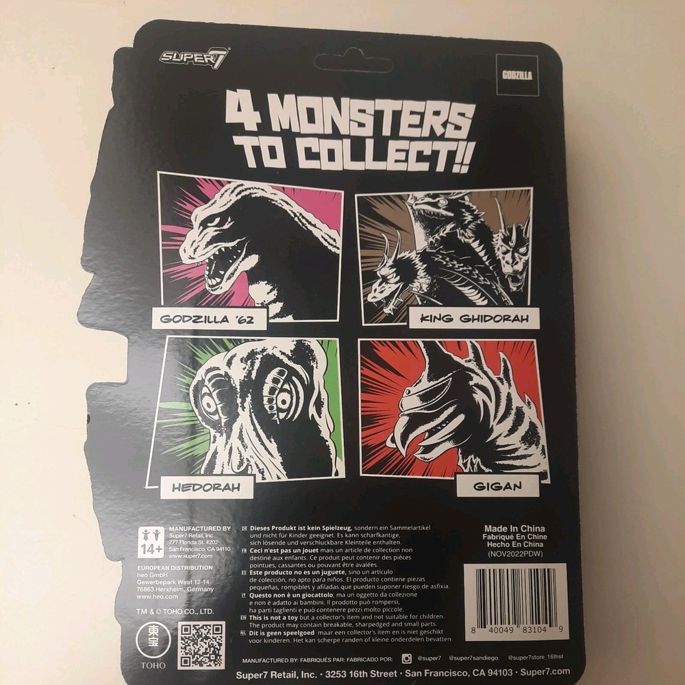 Unleash the terror of the cosmos with the Reaction/Super7 Godzilla 4" Glow in the Dark GIGAN action figure. Expertly crafted to capture the essence of the legendary monster, this collectible is a must-have for fans of classic sci-fi and monster memorabilia. The unique glow-in-the-dark feature adds an eerie ambiance, perfect for displaying in the dark or recreating those suspenseful scenes from the films. With its high-quality construction and attention to detail, this GIGAN figure stands as a tribute to the iconic Super 7 brand. It's an exceptional piece for both serious collectors and casual enthusiasts looking to add a touch of nostalgia to their shelf. Whether you're a Godzilla aficionado or a devotee of the 'Gigan' theme, this action figure is an outstanding addition to any collection.