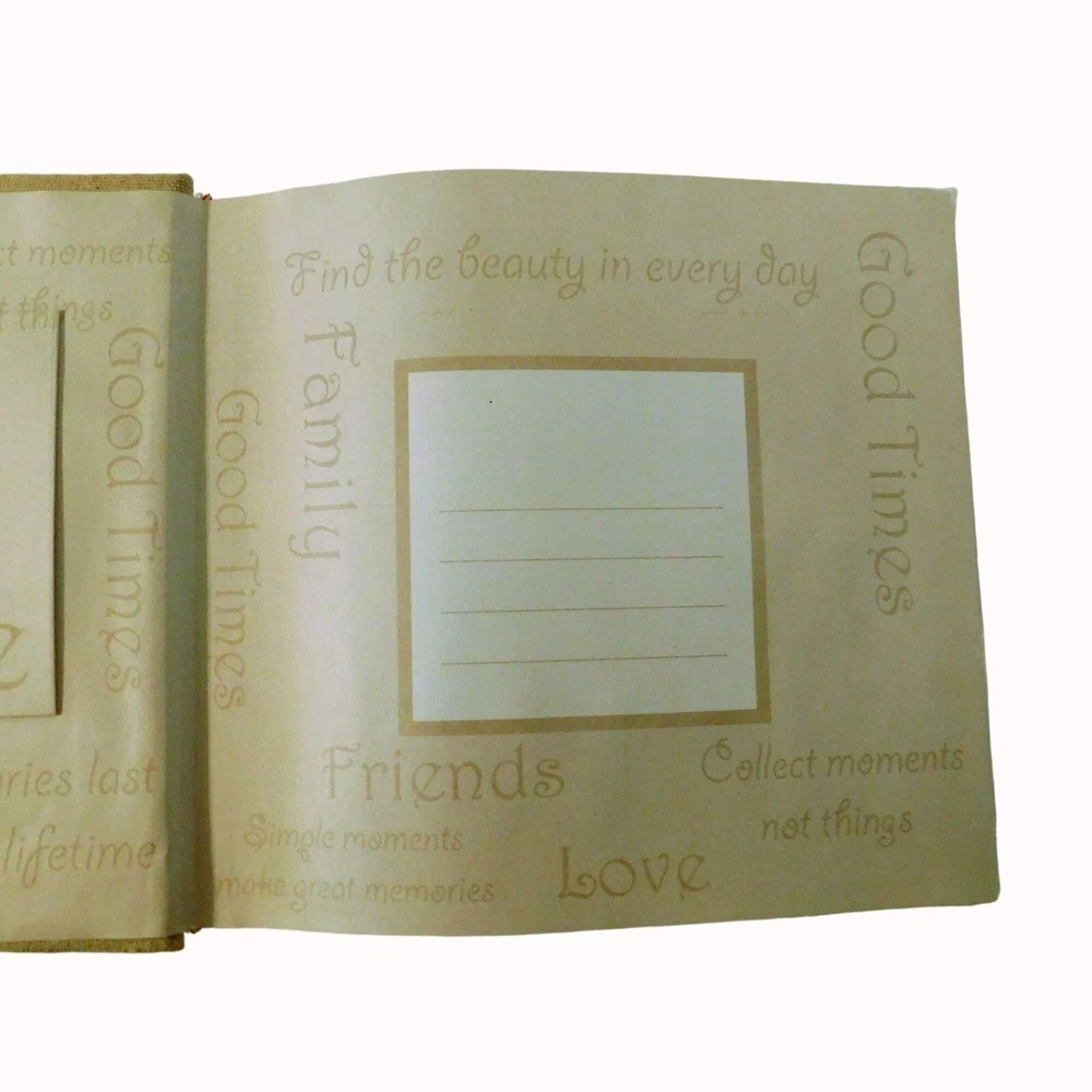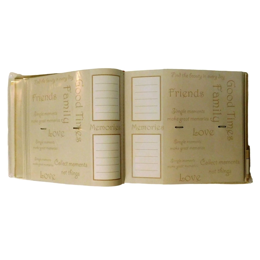 Features: • Holds 200 4" x 6" photos with a place for journaling • Cut out on front cover for photo • Slip pocket in back for CD • Album is 9" x 8.75" • Protected by plastic slip cover Thanks for shopping at Lone Star State Mercantile. Please visit my store for more items.