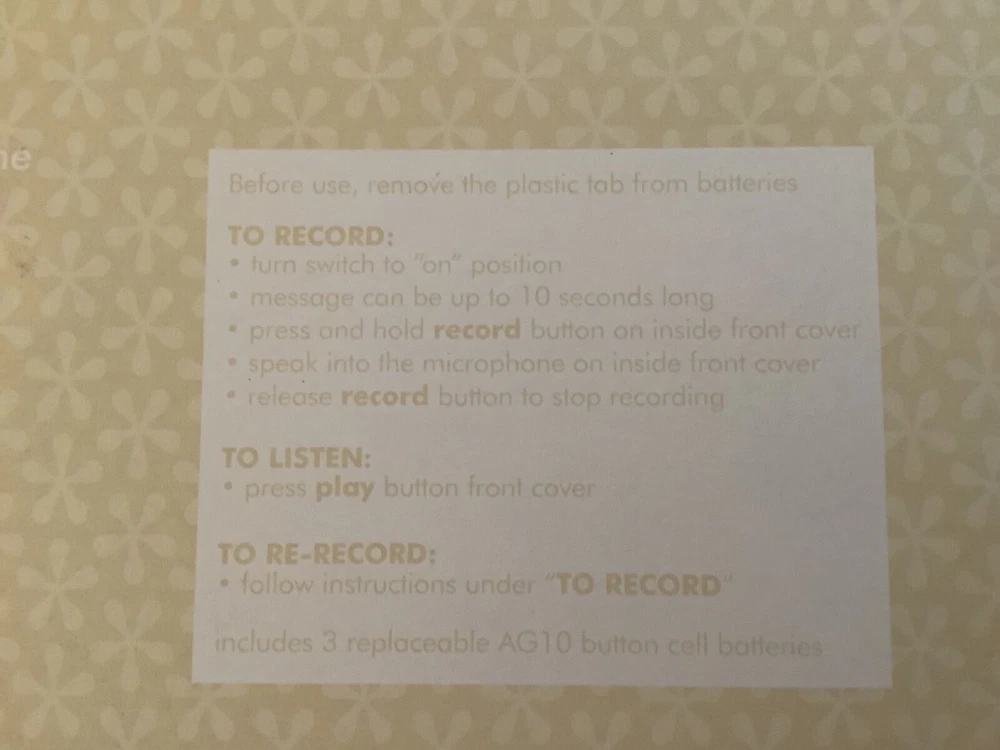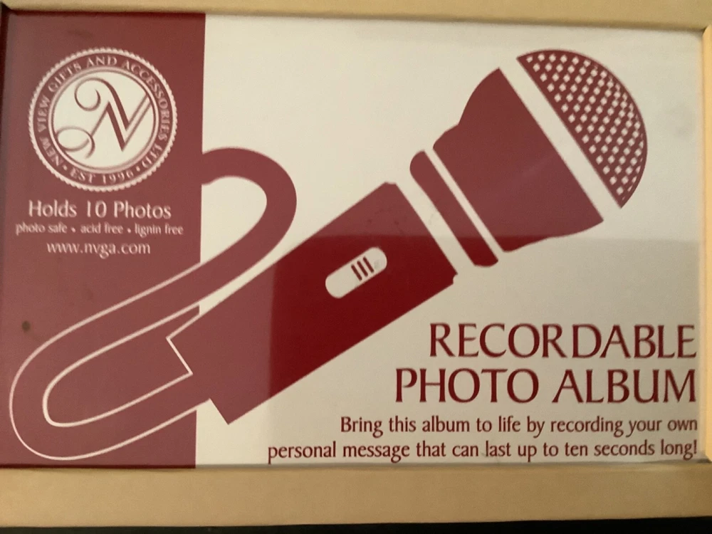 Preowned item is in very good condition. Never used. Plastic tab still intact. Holds 10 photos. Album measures 9”x7”. Records messages up to 10 seconds long. May need a fresh battery. Thanks for looki...