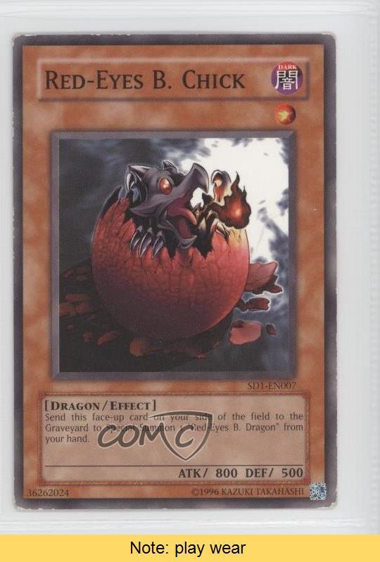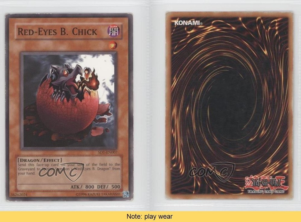 2005 Yu-Gi-Oh! Dragon's Roar - Structure Deck [Base] - Unlimited #SD1-EN007 Red-Eyes B. Chick COMC Item: 11615496 CONDITION NOTE: play wear - YuGiOh Card - Featuring Red-Eyes B. Chick Search for more: 2005 Yu-Gi-Oh! Dragon's Roar Search for more: 2005 Yu-Gi-Oh! Dragon's Roar - Structure Deck [Base] - Unlimited View all of our Listings Auctions Buy It Now About Us Located in the beautiful Pacific Northwest, COMC (Check Out My Cards) is the world's largest consignment service for trading card singles. More than 10,000 people have used our consignment service to list over 50 million trading cards. Find out how we can help you consign your items on eBay by contacting us through eBay messaging. COMC -- "The Safe & Easy Way to Buy & Sell" Raw Condition for Modern Cards Unless otherwise noted, raw modern cards are listed in Near Mint-Mint condition or better. A NM-MT card appears to be Mint at first glance, but upon closer inspection, may exhibit some of the following: minor print defects (e.g. roller marks, print line, dimple), minor scratches, slight edge wear, and slight corner wear. Centering is clearly visible in the images provided and does not factor into our condition assessment. Raw Condition for Vintage Cards Unless otherwise noted, raw vintage cards are listed in Excellent condition or better. An EX card may exhibit some of the following: minor rounding of corners, surface wear, print defects, light scratches, and slight edge wear/chipping. Centering is clearly visible in the images provided and does not factor into our condition assessment. Domestic Shipping Combined shipping for multiple items is available. To receive combined shipping, please ensure all desired items are in your eBay shopping cart before proceeding to checkout. eBay limits orders to 40 items per order. We automatically combine multiple orders placed on the same day. If you place multiple orders on the same day, please contact us to request a refund of applicable shipping costs. Signature confirmation may be required on invoices over $400. All cards are protected and shipped securely. International Shipping COMC offers eBay's International Shipping (EIS) for international orders under $2,500* (see country exceptions below). All duties and import fees are paid at checkout; in the rare event that there are additional import fees upon delivery, these are borne by the buyer. EIS packages route through a shipping hub in Erlanger, KY before shipping to their final destination. Please note that EIS does not allow for combined shipments. The shipping rates are determined by eBay and cannot be adjusted. *Maximum sale price exceptions: Colombia, Kuwait ($2,000); Taiwan ($1,539); Chile, Costa Rica, Guatemala, Honduras, Trinidad and Tobago ($1,000); Antigua and Barbuda, Aruba, Belize, Dominica, Grenada, Philippines, Saint Kitts and Nevis, Saint Lucia, Montserrat, Turks and Caicos Islands ($500); Dominican Republic, El Salvador ($200). Please request a shipping quote through eBay messaging for orders that exceed the maximum sale price supported by eBay's International Shipping. You will be responsible for all duties and import fees for international orders shipped outside the EIS. All cards are protected and shipped securely. Payment COMC does not accept offers on our cards through our eBay storefront. COMC utilizes eBay’s managed payments system. If you are experiencing difficulties making a payment, please contact eBay for assistance. Return Policy Returns are only accepted on the rare occasion the item is not as described. If you are making a return, please initiate the return process through eBay so a mailing label can be provided for you. Prior to listing, our expert team carefully assessed this item to represent it accurately. Please review the description and high-definition images prior to purchasing to ensure this item meets your satisfaction. We welcome you to contact us if you have further questions about this item. Trust and Integrity COMC carefully assesses each item consigned to us to prevent fraudulent items from entering the marketplace. If you believe an item offered on COMC may be fraudulent, please contact us with details so we can investigate the issue. Items we determine are outside our supported items policy may be removed. Last Modified: 6/2/2025 4:46:38 PM PDT