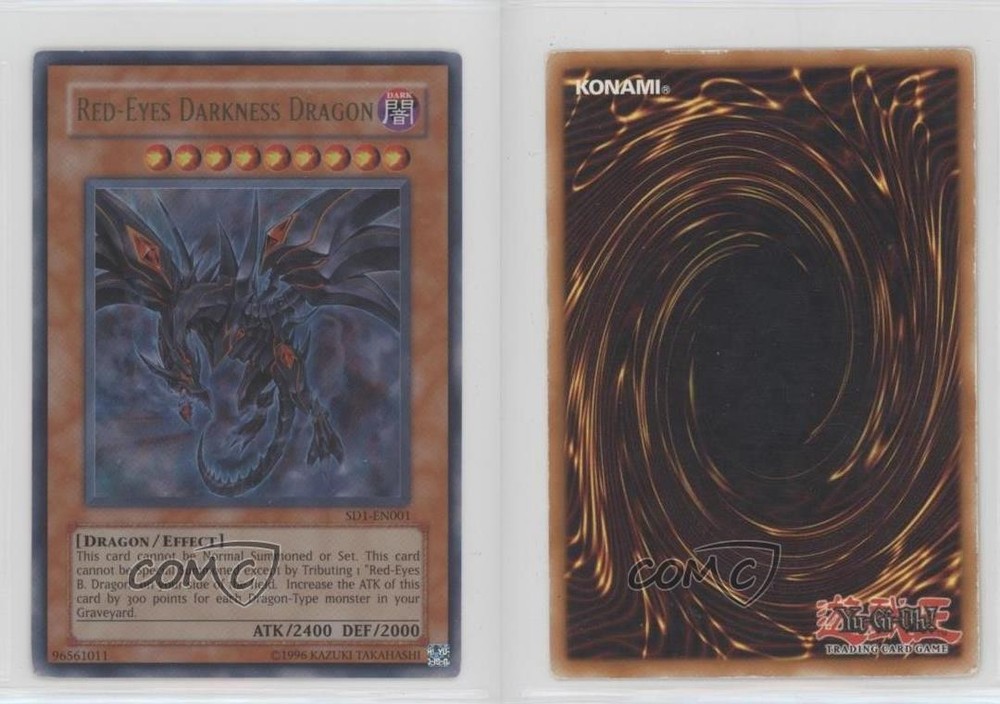 2005 Yu-Gi-Oh! Dragon's Roar - Structure Deck [Base] - Unlimited #SD1-EN001 Red-Eyes Darkness Dragon COMC Item: 176298481 - YuGiOh Card - Featuring Red-Eyes Darkness Dragon Search for more: 2005 Yu-Gi-Oh! Dragon's Roar Search for more: 2005 Yu-Gi-Oh! Dragon's Roar - Structure Deck [Base] - Unlimited View all of our Listings Auctions Buy It Now About Us Located in the beautiful Pacific Northwest, COMC (Check Out My Cards) is the world's largest consignment service for trading card singles. More than 10,000 people have used our consignment service to list over 50 million trading cards. Find out how we can help you consign your items on eBay by contacting us through eBay messaging. COMC -- "The Safe & Easy Way to Buy & Sell" Raw Condition for Modern Cards Unless otherwise noted, raw modern cards are listed in Near Mint-Mint condition or better. A NM-MT card appears to be Mint at first glance, but upon closer inspection, may exhibit some of the following: minor print defects (e.g. roller marks, print line, dimple), minor scratches, slight edge wear, and slight corner wear. Centering is clearly visible in the images provided and does not factor into our condition assessment. Raw Condition for Vintage Cards Unless otherwise noted, raw vintage cards are listed in Excellent condition or better. An EX card may exhibit some of the following: minor rounding of corners, surface wear, print defects, light scratches, and slight edge wear/chipping. Centering is clearly visible in the images provided and does not factor into our condition assessment. Domestic Shipping Combined shipping for multiple items is available. To receive combined shipping, please ensure all desired items are in your eBay shopping cart before proceeding to checkout. eBay limits orders to 40 items per order. We automatically combine multiple orders placed on the same day. If you place multiple orders on the same day, please contact us to request a refund of applicable shipping costs. Signature confirmation may be required on invoices over $400. All cards are protected and shipped securely. International Shipping COMC offers eBay's International Shipping (EIS) for international orders under $2,500* (see country exceptions below). All duties and import fees are paid at checkout; in the rare event that there are additional import fees upon delivery, these are borne by the buyer. EIS packages route through a shipping hub in Erlanger, KY before shipping to their final destination. Please note that EIS does not allow for combined shipments. The shipping rates are determined by eBay and cannot be adjusted. *Maximum sale price exceptions: Colombia, Kuwait ($2,000); Taiwan ($1,539); Chile, Costa Rica, Guatemala, Honduras, Trinidad and Tobago ($1,000); Antigua and Barbuda, Aruba, Belize, Dominica, Grenada, Philippines, Saint Kitts and Nevis, Saint Lucia, Montserrat, Turks and Caicos Islands ($500); Dominican Republic, El Salvador ($200). Please request a shipping quote through eBay messaging for orders that exceed the maximum sale price supported by eBay's International Shipping. You will be responsible for all duties and import fees for international orders shipped outside the EIS. All cards are protected and shipped securely. Payment COMC does not accept offers on our cards through our eBay storefront. COMC utilizes eBay’s managed payments system. If you are experiencing difficulties making a payment, please contact eBay for assistance. Return Policy Returns are only accepted on the rare occasion the item is not as described. If you are making a return, please initiate the return process through eBay so a mailing label can be provided for you. Prior to listing, our expert team carefully assessed this item to represent it accurately. Please review the description and high-definition images prior to purchasing to ensure this item meets your satisfaction. We welcome you to contact us if you have further questions about this item. Trust and Integrity COMC carefully assesses each item consigned to us to prevent fraudulent items from entering the marketplace. If you believe an item offered on COMC may be fraudulent, please contact us with details so we can investigate the issue. Items we determine are outside our supported items policy may be removed. Last Modified: 6/2/2025 4:40:49 PM PDT