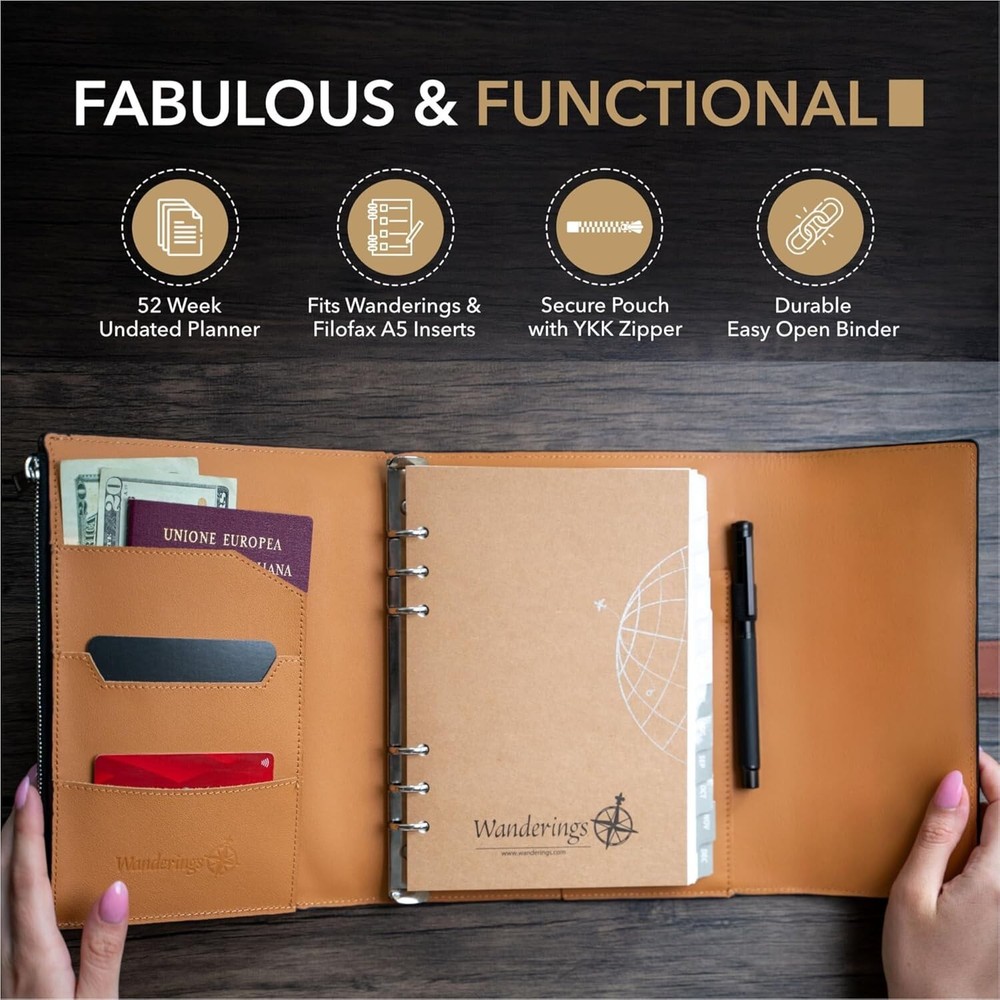 Refillable 6-Ring A5 Leather Planner Binder with Thick Paper & Organizer Pockets < class="slides"> ‹ › ‹ › ‹ › ‹ › ‹ › ‹ › ‹ › ‹ › ‹ › Refillable 6-Ring A5 Leather Planner Binder Elevate Your Planning Experience This luxurious A5 leather planner is a nexus of sophistication and practicality, crafted to assist you in organizing your life with style and grace. Features: Handcrafted Full-Grain Leather: Made from , full-grain leather that provides not only a classic look but also a rich aroma and feel, ensuring that it ages beautifully, becoming a cherished keepsake. Versatile & Refillable: Designed for both professionals and creatives, this planner features inner pockets for cards, notes, and a convenient pen loop, compatible with 6-hole A5 inserts for versatile planning. Secure & Durable: Equipped with a 6-ring stainless steel binding system that ensures your pages remain secure, making it ideal for use as an agenda notebook, travel planner, or organizer journal. High-Quality 120 GSM Paper: Includes an undated calendar insert with 52 weekly spreads and 200 pages of thick paper, preventing ink bleed-through and enhancing your writing experience. Customizable Refills: Effortlessly refill your planner with genuine inserts. Choose from various formats including blank, lined, dotted, dated, and undated options to suit your needs. Added Storage: A built-in YKK zipper pocket offers extra storage for your phone, valuables, and essential items, making it not just beautiful, but incredibly functional too. Why Choose Our Leather Planner? Most journals are fleeting; our leather planner is built to last. It is an enduring companion for capturing thoughts amid life's chaos, whether sipping tea while listening to raindrops or traveling through bustling city life. Specifications: Dimensions: 7" x 9" / 18cm x 23cm Ring Diameter: 2cm Let your story unfold in the elegance of a leather planner binder, a perfect blend of tradition and practicality. Enjoy planning, creating, and capturing those fleeting moments—unplugged and uninterrupted. Shipping Free & Fast Shipping - We offer free shipping to most of the USA with a normal delivery time of 3-7 days. However, due to the current situation, additional delivery time (up to 3 weeks) may be required for some items. Alternative Carriers - We may use alternative carriers (e.g. USPS, FedEx, UPS, etc.) to ensure your package arrives safely and on time. Due to the use of multiple carriers, we are unable to provide a tracking number automatically. Handling Time - Orders are processed and shipped within 1-2 business days of receiving cleared payment. Shipping Restrictions - Shipping to Alaska, Hawaii, Puerto Rico, Guam, and other US territories may incur shipping charges or delivery restrictions. Please contact us before ordering, or your order can be refunded/cancelled. State Restrictions - There may be restrictions based on your state of purchase. For example, certain items may not be shipped to California due to state regulations. Contact for Tracking Updates - If you require tracking updates or have any concerns about the delivery of your order, please feel free to contact us, and we will be happy to assist you. Return 30-Day Hassle-Free Returns - We want you to be completely satisfied with your purchase. If you are not, you can return the item within 30 days of receiving it for a full refund or exchange. Easy Return Process - To start a return, simply contact us and we will provide you with a prepaid return shipping label and detailed instructions. Restocking Fee - There are no restocking fees for returns. However, the buyer is responsible for return shipping costs if the return is not due to a seller's error. Refund Processing Time - Refunds will be processed within 5 business days of receiving the returned item in its condition. Payment We accept all major credit cards, PayPal, and Apple Pay for your convenience. Your payment information is secure and encrypted to ensure a safe and seamless transaction. Please complete your payment within 3 days of purchase to avoid any delays in shipping. Feedback Your feedback is extremely important to us. We strive to provide the best products and customer service possible. If you are satisfied with your purchase, please take a moment to leave us a positive review. If you have any concerns or issues with your order, please contact us before leaving negative feedback. We are committed to resolving any problems and ensuring your satisfaction. Contact Us If you have any questions or concerns, please feel free to out to our customer support team. You can contact us through the eBay messaging system. We are available Monday to Friday, 9:00 am to 5:00 pm EST, and we will do our best to respond to your inquiry within 24 hours. Buy it now and enjoy a pleasant shopping experience! Unit Quantity: 1.74 Type: Binder Material: Leather Size: A5 Format: Weekly/Monthly Unit Type: lb