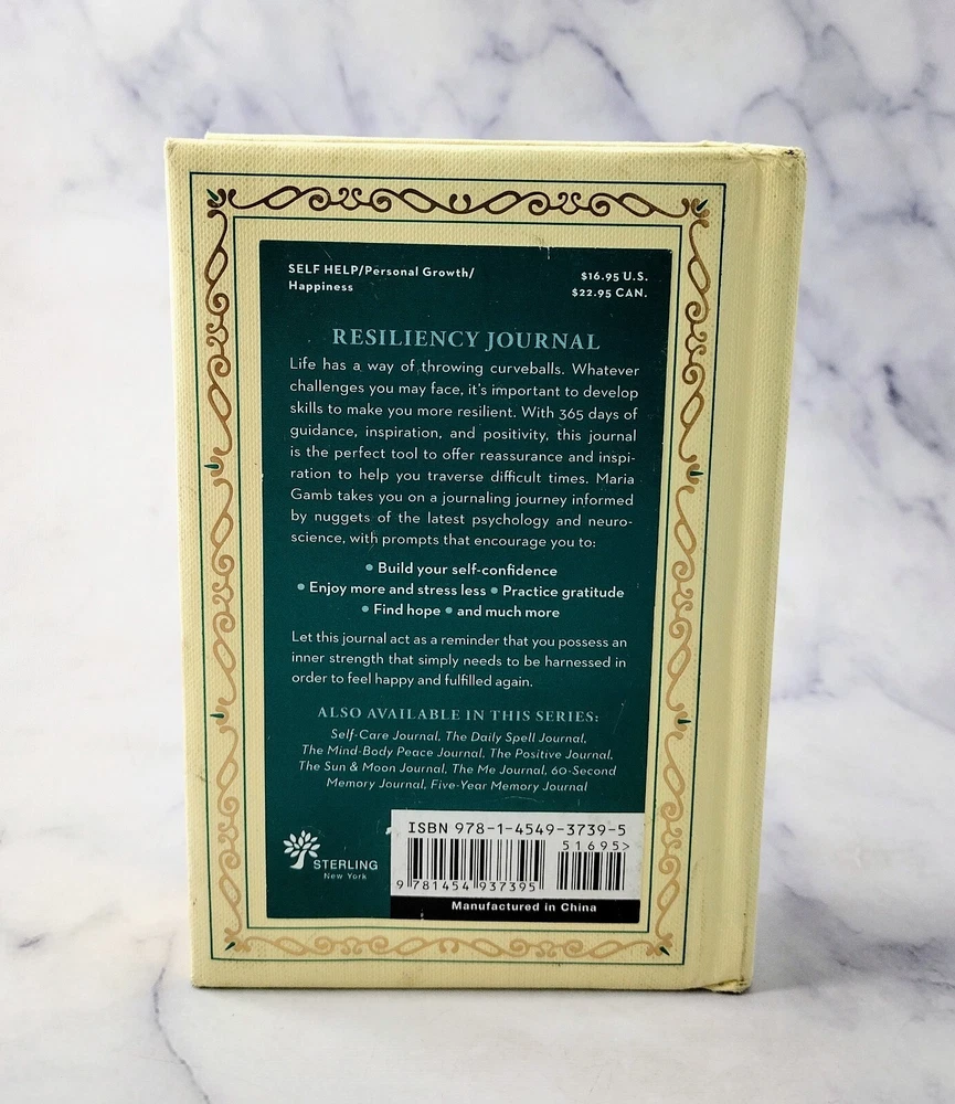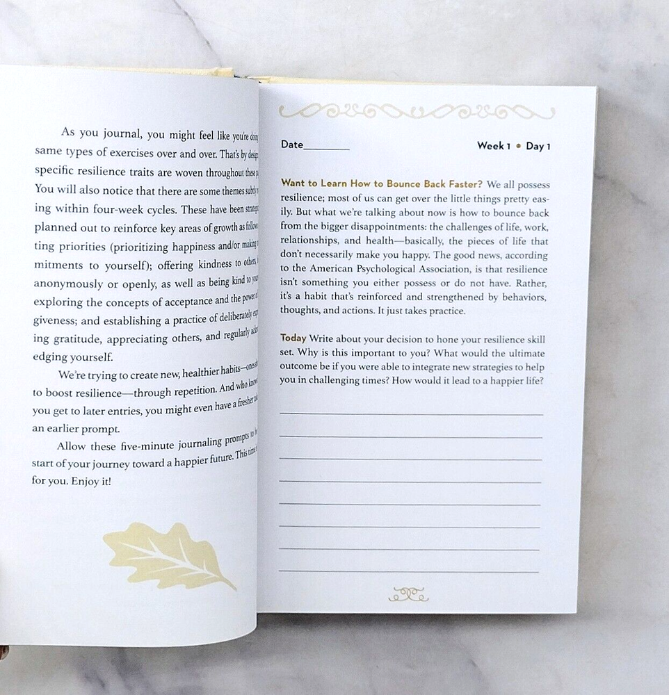 Resiliency Journal : 5 Minutes a Day...by Maria Gamb (2020, Hardcover) Please see all of our original photos. Outer page edge has some scratches, and some minor cover edge smudging. Journal measures 4 1/8" x 6 1/4" x 1 1/4". Faux leather cover with gold details and gilded page edges. Satin ribbon marker. Guided journal has repeated exercises and recurrent themes to help develop resiliency. Includes kindness acceptance, forgiveness, gratitude and self acknowledgement. We will ship your new journal with USPS media mail. Combined shipping is available. No international shipping. πΎThanks from Buster's Place-stop by our store for more great books!πΎ