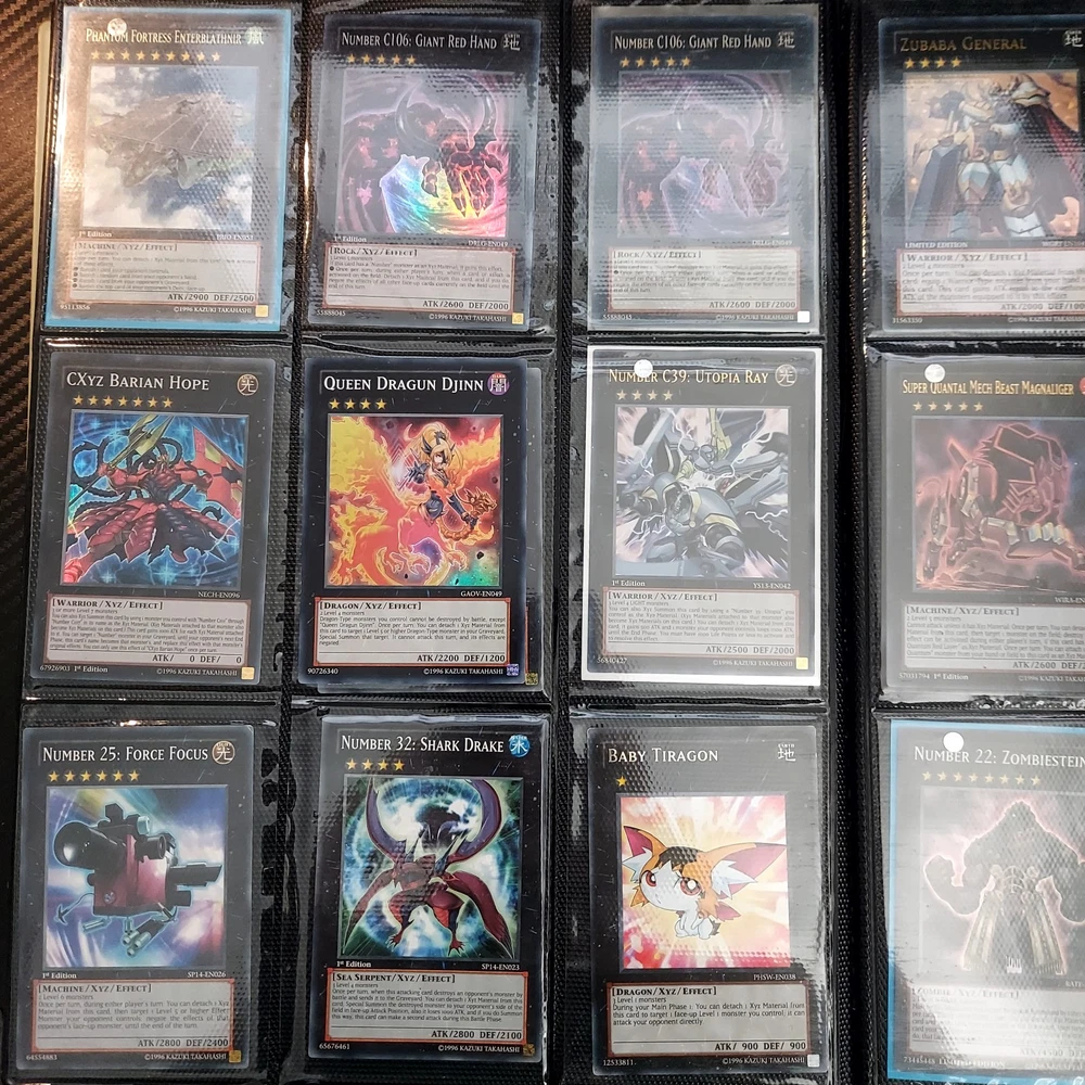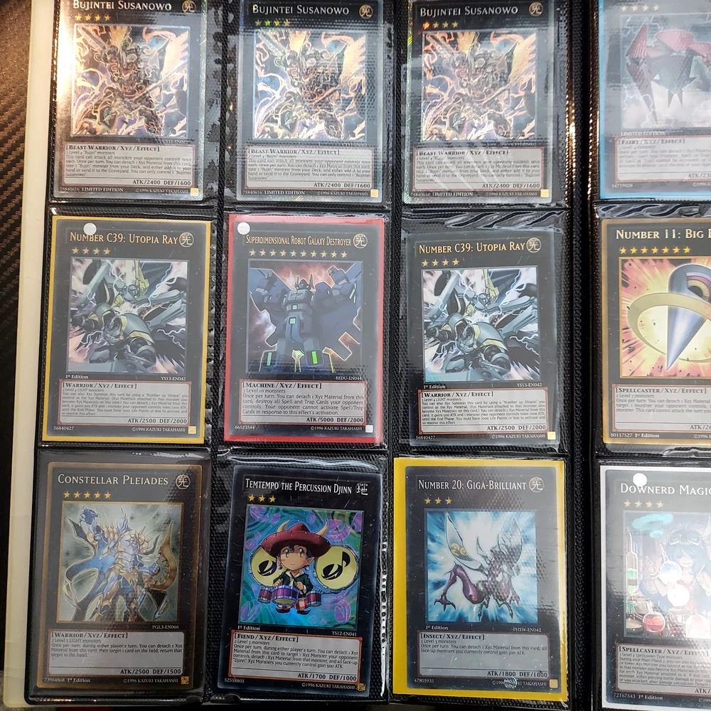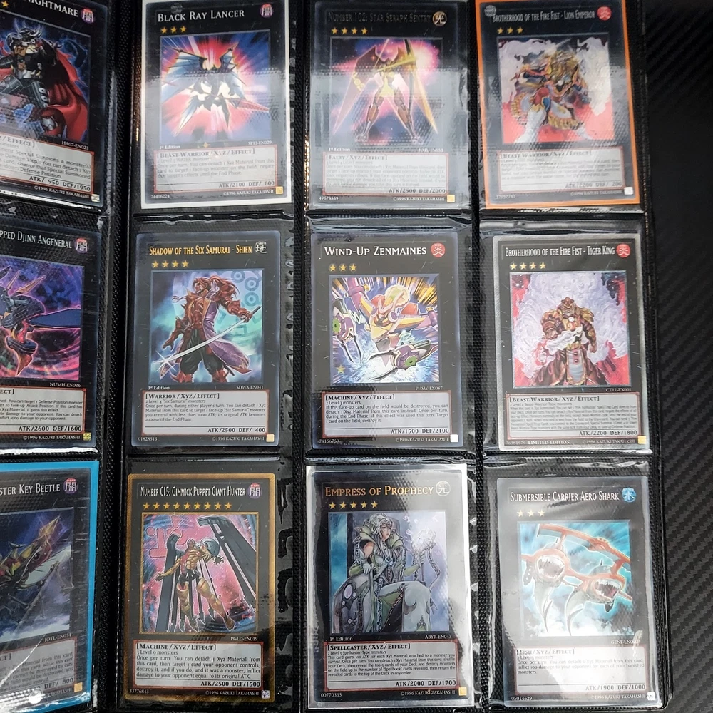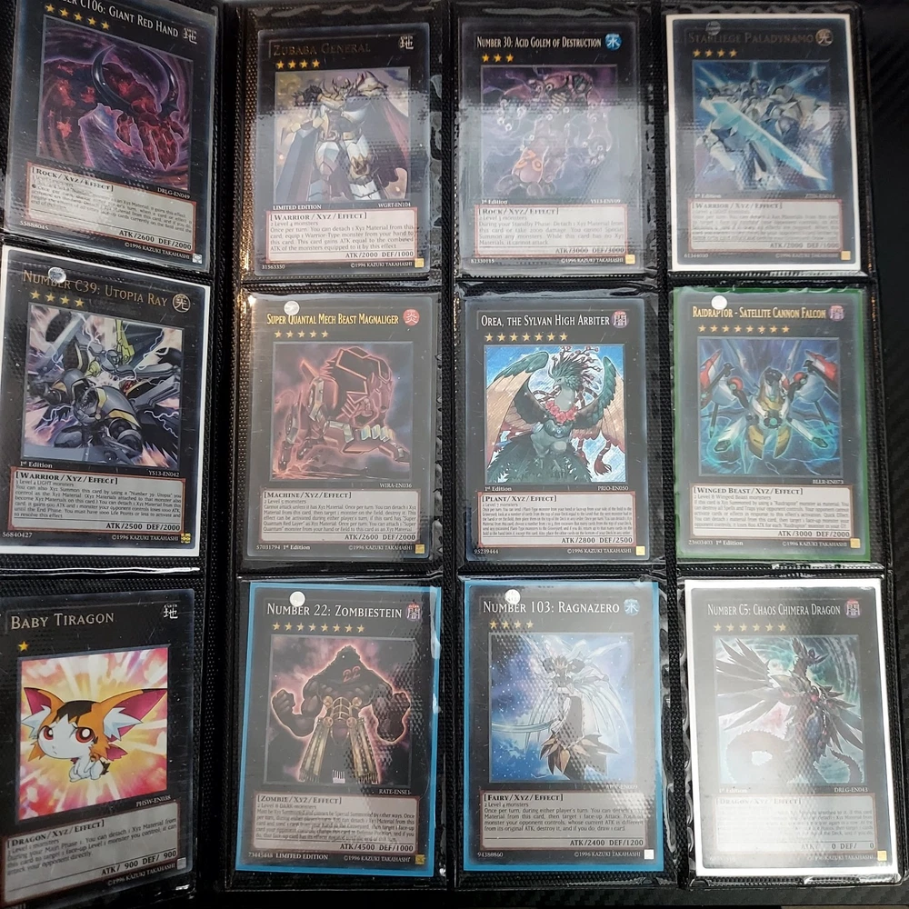 If your a yugioh collecter this is for you! its a great collection of ive obtained over 10 years or so featuring vintage modern from the early XYZ gen years set cards. Includes rares super ultra gold secret ultimate you name it ..its in here. Excellent condtion cards most nm lots of " 1st editions " included and play set cards ..lots of holographic cards. Super collection of cards not all cards are shown there is a few more pages and cards behind cards. A must for any fan or collecter..this was personally mine so great value collection and looked after.
