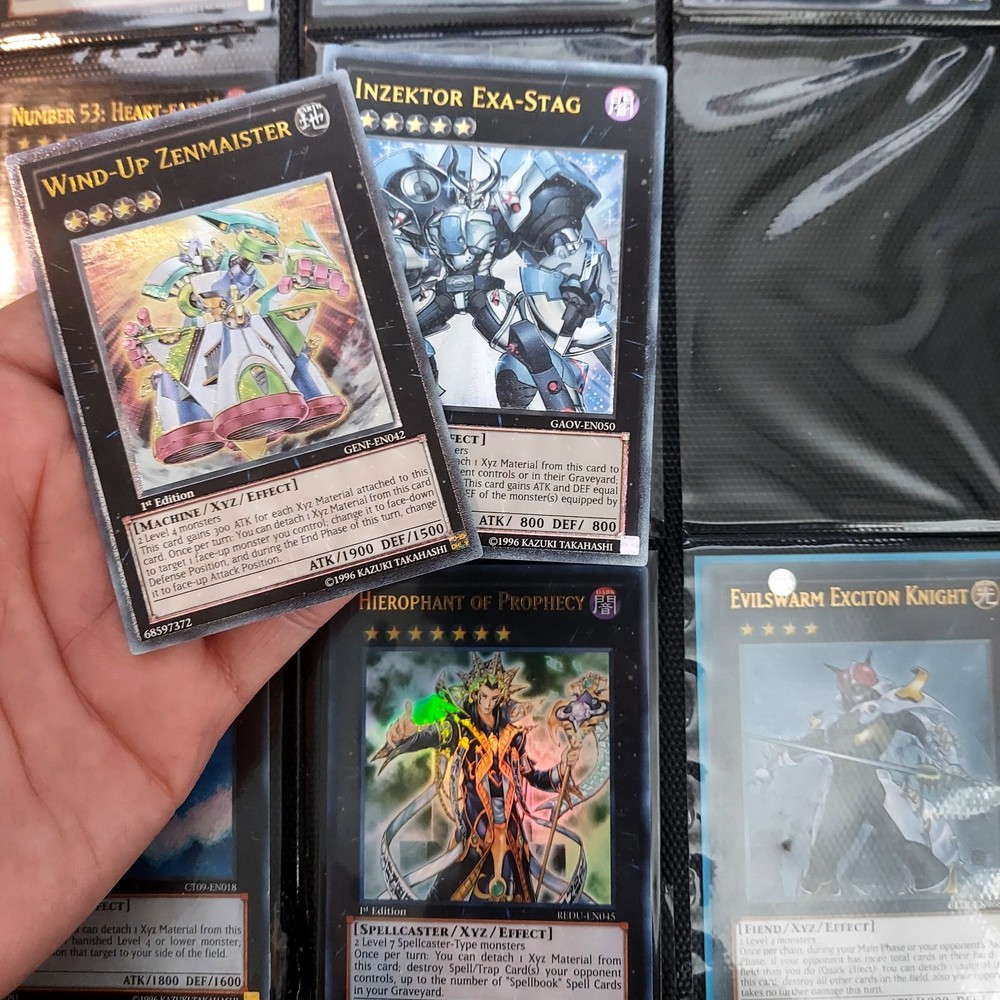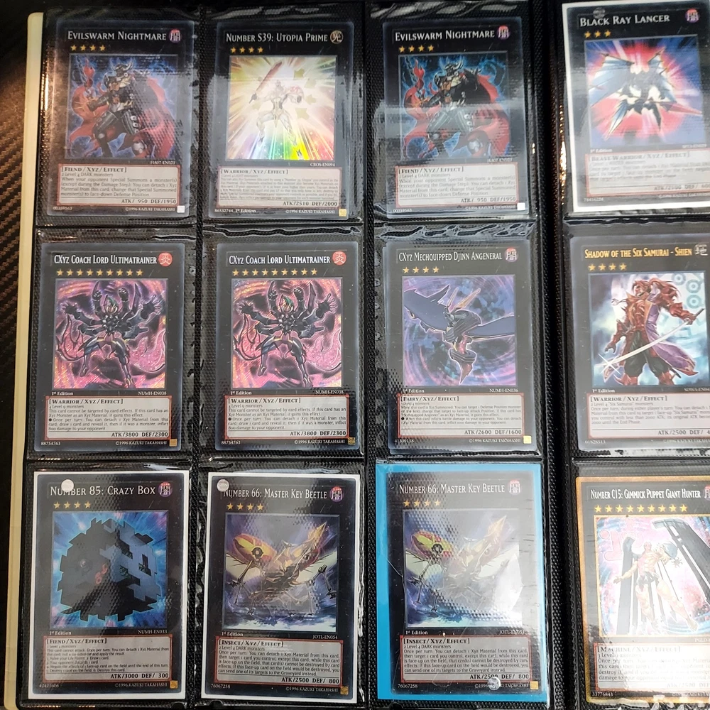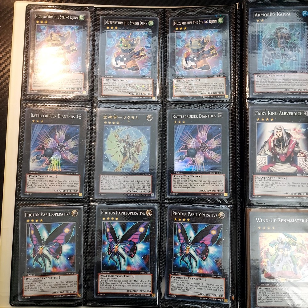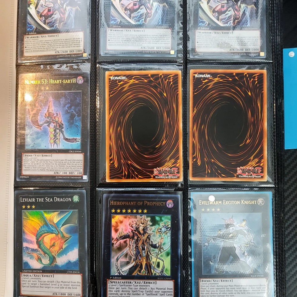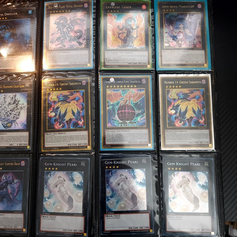 If your a yugioh collecter this is for you! its a great collection of ive obtained over 10 years or so featuring vintage modern from the early XYZ gen years set cards. Includes rares super ultra gold secret ultimate you name it ..its in here. Excellent condtion cards most nm lots of " 1st editions " included and play set cards ..lots of holographic cards. Super collection of cards not all cards are shown there is a few more pages and cards behind cards. A must for any fan or collecter..this was personally mine so great value collection and looked after.