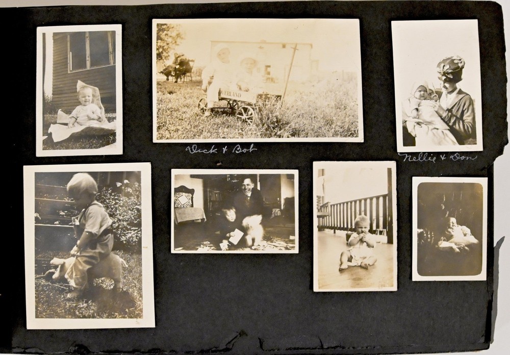 [ALBUM] [INDIANA UNIVERSITY] YOUTH OF A BUSINESSMAN Author: Richard C. Holmquist Title: [ALBUM] [INDIANA UNIVERSITY] YOUTH OF A BUSINESSMAN Description: Richard Charles Holmquist (1915-2008) was the first Executive Director of the Virginia Industrialization Group (VIG), impacted the educational landscape throughout Virginia to this day. After the 1954 Brown v. Board of Education overturned the prevailing ‘separate but equal’ approach to schooling, many Southern communities organized to resist racial integration. This “Massive Resistance” movement was championed by then-governor J. Lindsay Almond. Virginia business leaders formed the VIG in 1958 to try and improve the business climate resulting from lengthy school closings for much of the population. Holmquist was hired in 1961 as their first Executive Director, and served three years promoting the establishment of a state-wide technical college system. He traveled all around Virginia speaking with civic leaders about the benefits of industrial development. ~~Holmquist’s album is a 7 ¼” x 11 ½” x 2” black leather-covered album with black paper pages bound with string and embossed with his name. It contains 50 pages of black and white photos chronicling his youth in the Midwest through his naval service in WWII, followed by some 1964 color snapshots from his VIG speaking tour. Holmquist was the eldest of 5 children, belonged to Alpha Kappa Psi fraternity at Indiana University, and married in 1941 before serving in WWII as Navy ensign. From sitting on a donkey with Santa Claus in 1918 through shipping off to Europe in uniform, the album offers a pleasant journey through time in captioned memories.~~1 loose page, a few loose photos. Wear on covers. Good+ ~. Seller ID: 298393 Subject: History & Military Black Swan Books Richmond VA We specialize in antiquarian books, classic literature, the Civil War, Viriginiana, travel, art, children's books, and other subject areas, including religion and philosophy . Terms Payment via PayPal is preferred. All orders ship within two [2] business days, Monday through Friday by standard mail, USPS Media Mail. Combined orders and expedited shipping is available. Please contact us for a shipping quote before ordering. All items are guaranteed as listed and described. Any item may be returned within 30 days for any reason in the condition is which they were sent. This listing was created by Bibliopolis.