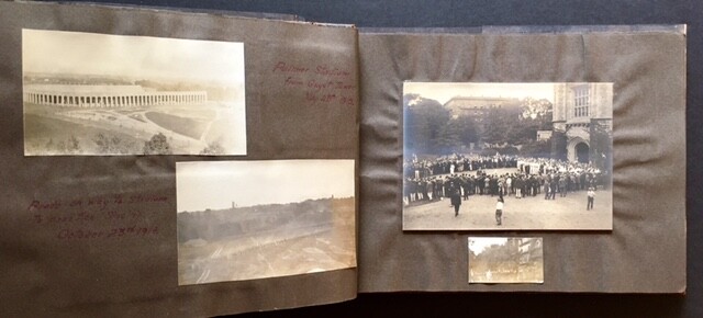 Princeton University Photo Album Author: Robert Johnson McClintock Title: Princeton University Photo Album Description: Full leather. Wonderful Princeton University photo album, put together by Robert Johnson McClintock '17 (same graduating class as F. Scott Fitzgerald, who left early in his Senior year and never graduated). The album, an oblong quarto, roughly spans McClintock's 4 year tenure (1914-1917) at Princeton and captues the construction of --and earliest football games played at-- Palmer Stadium (1914-1997), the Princeton crew rowing on Carnegie Lake, nice shots of the campus itself and interior shots of McClintock's dorm room and his fraternity (probably along fraternity row on Washington St.). Also includes nice vernacular shots of friends and classmates and his family life. The album is solid and well-preserved to boot, with a clean, sturdy leatherette binding and crisp, clear photos (a number of which are captioned in McClintock's hand) thruout. A nice piece of early 20th century Americana. Very Good +. Seller ID: 13781 Subject: Photography Appledore Books Waccabuc, NY We offer an eclectic selection, specializing in childrens, art, photography, literature, history, chess, sports and more. Guarantee We are members of the Antiquarian Booksellers' Association of America (ABAA) and we stand behind what we offer for sale. Any item may be returned for any reason within 30 days of receipt. Shipping All books shipped to US destinations are sent US Post Office Media Mail. Delivery typically takes a week, but may be longer, especially during the holidays. Faster shipping is available, please contact us for a price quote. We will combine shipping on items purchased at the same time. If you check out immediately and are overcharged for shipping during checkout, we will send you a prompt refund, once the actual shipping costs are known. Feedback We leave feedback for buyers once they have posted feedback for us. If you are unhappy with any aspect of a transaction with us, please contact us immediately. We work hard to keep buyers happy and to resolve the rare problem promptly. This listing was created by Bibliopolis.