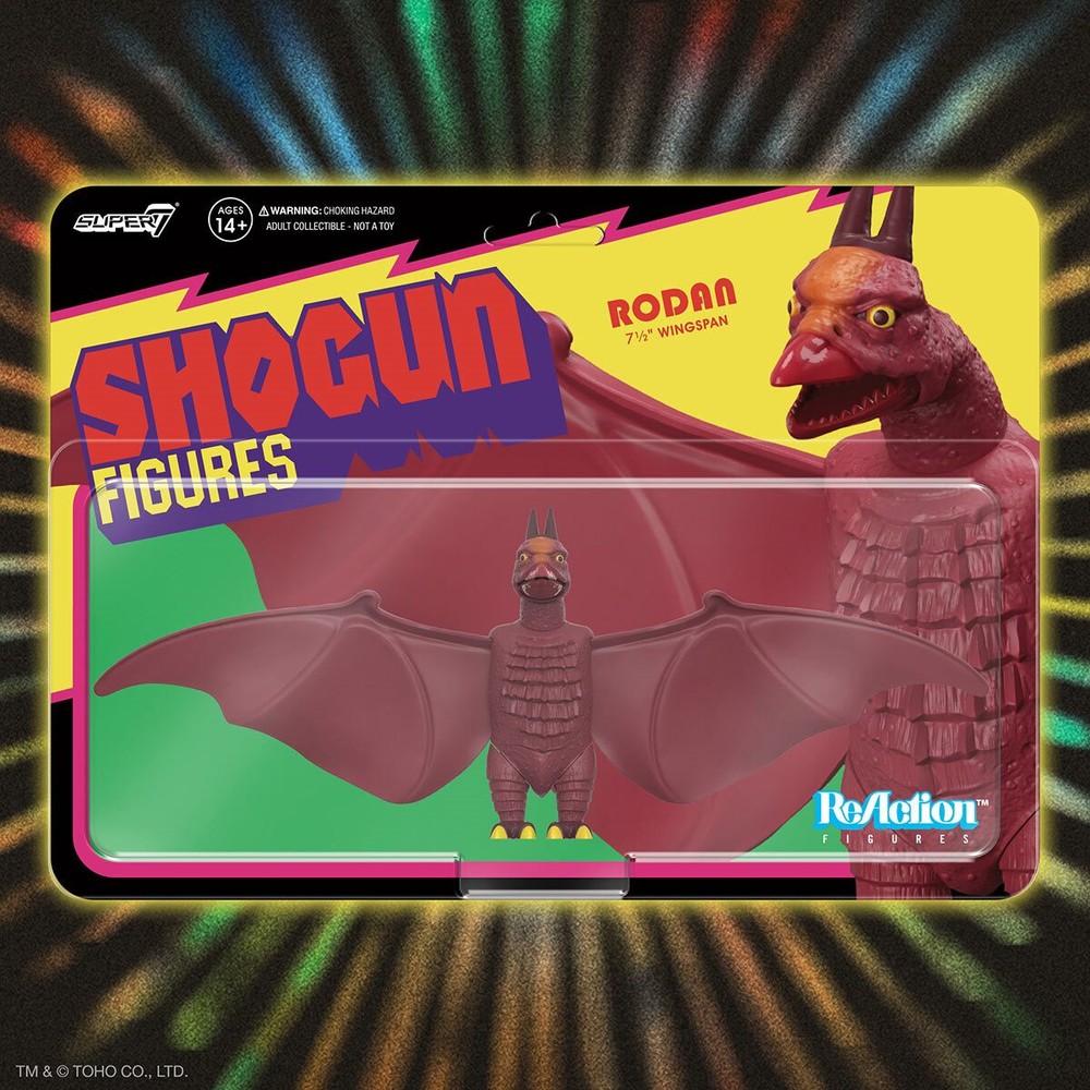 Rodan Godzilla Shogun 3.75" Super7 Reaction Action Figure New in Box 📏1/18 Scale / 3.75" Scale 📦 Combined Shipping...Always Attention, Earth dwellers and monster enthusiasts! From the smoldering depths of Mount Aso comes a creature of unparalleled might and terror! Behold, the Shogun Rodan ReAction Figure - a 3 3/4-inch titan that will send shockwaves through your collection! Picture this, if you dare: Wings spread an awe-inspiring 7 1/2 inches, ready to blot out the sun! This fearsome beast boasts articulated wings that slice through the air with deadly precision. And that's not all, folks! Its hinged jaw opens wide, ready to unleash an earth-shattering screech that will echo through the ages! But wait, there's more! This isn't just any ordinary toy, oh no! This Shogun Rodan is a rare artifact , inspired by the legendary large format action figures of yesteryear. Finding an original is about as likely as unearthing Pteranodon fossils in your own backyard! Collectors, take heed! This figure is your chance to own a piece of monster movie history without the hassle of finding display space for those enormous vintage wings. It's the perfect solution for the discerning kaiju connoisseur! And now, a word of caution: This figure is so incredibly lifelike, so terrifyingly realistic, that we must advise - it's for brave souls aged 14 and up only! Don't delay, monster mavens! Add this Shogun Rodan ReAction Figure to your collection before it flies off into the sunset! Remember, in the world of kaiju collecting, hesitation could mean extinction ! Secure Your Shogun Rodan Now! Shogun Rodan ReAction Figure - Because every day is monster day in your collection! pecifications UPC: 840049824294 Company: Super7 Theme: Godzilla Product Type: Action Figures Character: Rodan Age: 14 + Country of Origin: Vietnam Packaging Height: 2 inches (5.08 cm) Packaging Width: 6.50 inches (16.51 cm) Packaging Length: 9 inches (22.86 cm) Package Weight: 0.20 lb Package Cubic Feet: 0.07 Package Dimensional Weight: 0.59 lb