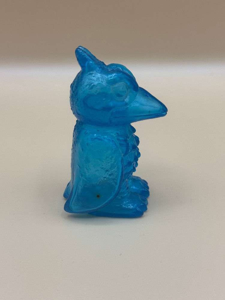 In 2000, along with a series of clear blue Vinyl Paradise releases, Marmit also gave us a set of 5 mini-figures (Godzilla, Rodan, Mothra Larva, Hedorah, Anguirus) with the same treatment. This "tiny series" is a collector-favorite and has become more and more difficult to track down (for a reasonable price) over the last few years. This RODAN is 2.25" tall. No packaging.