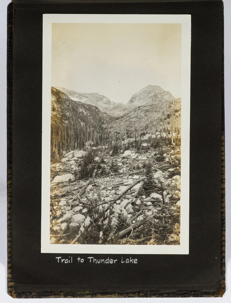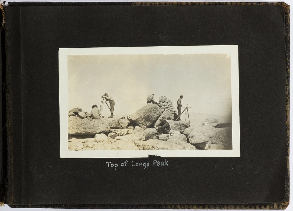 [Photo Album]: Longs Peak Quad[rangle], Colorado. 1913 Author: MONBECK, Roy R. Title: [Photo Album]: Longs Peak Quad[rangle], Colorado. 1913 Publication: Colorado: 1913 Description: Softcover. Small oblong octavo. Approximately 7" x 5.5". Leather over flexible card wrappers. Label on front wrap. R.R. Monbeck, U.S. Geological Survey, Washington, D.C." inside front cover, and "Longs Peak Quad" on front fly, both in white album ink. 84 sepia-toned gelatin sliver photographs measuring between 4.5" x 2.75" and 5.5" x 3.5", mostly one or two to the page, most very neatly captioned in white album ink. A couple of newspaper clippings tipped in. Modest edge wear to the album, front hinge cracked, else very good; images are near fine. A subject specific album taken by a member of a U.S. Geological Survey crew working mostly in the northern Front Range of the Rocky Mountains in the Rocky Mountain National Park Wilderness for several months starting in June 1913. Set entirely in Colorado, among the other locations mentioned are Ousel Lake, Thunder Lake, Wild Basin, North St. Vrain, Tubleson Lake, Buchanan Pass, Ward, Saw Tooth, Albion Reservoir, Arapaho Peak, and many others. While most of the images are of the crew at work and the locations that they were surveying, there are a modest number of pictures of local people they visited with, including a few of young women, including one of Vesta Schaedla, the University of Colorado woman's tennis champion, who must have visited the camp. An exceptionally well-composed and very carefully captioned album. A superior example of this type of album. Seller ID: 414286 Subject: Americana, Photography Between the Covers Between the Covers has been selling books for more than 30 years. Today we offer a wide ranging inventory, from Modern First Editions to General Used Books to Rare Archival Collections. We are active members of the Antiquarian Booksellers' Association of America (ABAA) and the International League of Antiquarian Booksellers (ILAB) . Terms All orders ship within two business days. Standard mail is USPS Media Mail. Expedited and international shipping are also available. We offer combined shipping on multiple orders. All books are guaranteed to be as described or they may be returned within 30 days of receipt for a full refund. This listing was created by Bibliopolis.