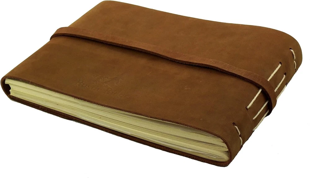 Rustic Genuine Leather Photo Album with Gift Box - Scrapbook Style Pages - Holds 60 4x6 or 5x7 Photos Brown Rustic genuine leather photo album with wrap tie closure by Hand made using high quality leather and acid-free cardstock paper. **Photo mounts required.** Traditional cardstock pages with semi-transparent sheet between each page. Includes 60 pages (30 sheets) of cardstock pages. Holds 60 4x6" or 5x7" photos. Album size: "L x 6"W - Page Size: "L x "W - Gift box included Very stylish and classy way to store and present your photos. Makes a great gift. This rustic leather photo album by is the perfect way to store and present your photos with style and class. The rustic leather cover is made from high quality leather that not only looks great, but will last for s to come. The leather photo album holds 60 4x6" or 5x7" photos, and is the perfect size to bring along with you to gatherings with family and friends. This Rustic Leather Photo Album gives a uniquely classic look, style, and feel that you will not find in a modern style photo albums. Natural variations in the leather make each journal a one of a kind, and adds to the unique character of each one. This is a scrapbook style photo album. The cream colored pages are traditional acid-free cardstock with a semi-transparent sheet between each page, allowing you to attach photos to both sides of the pages. This leather photo album makes a perfect unique gift for the person in your life who seems to have everything , or you can buy it for yourself. Either way, you will be pleasantly surprised with the look, smell, quality, and class of this rustic hand made leather photo album by .