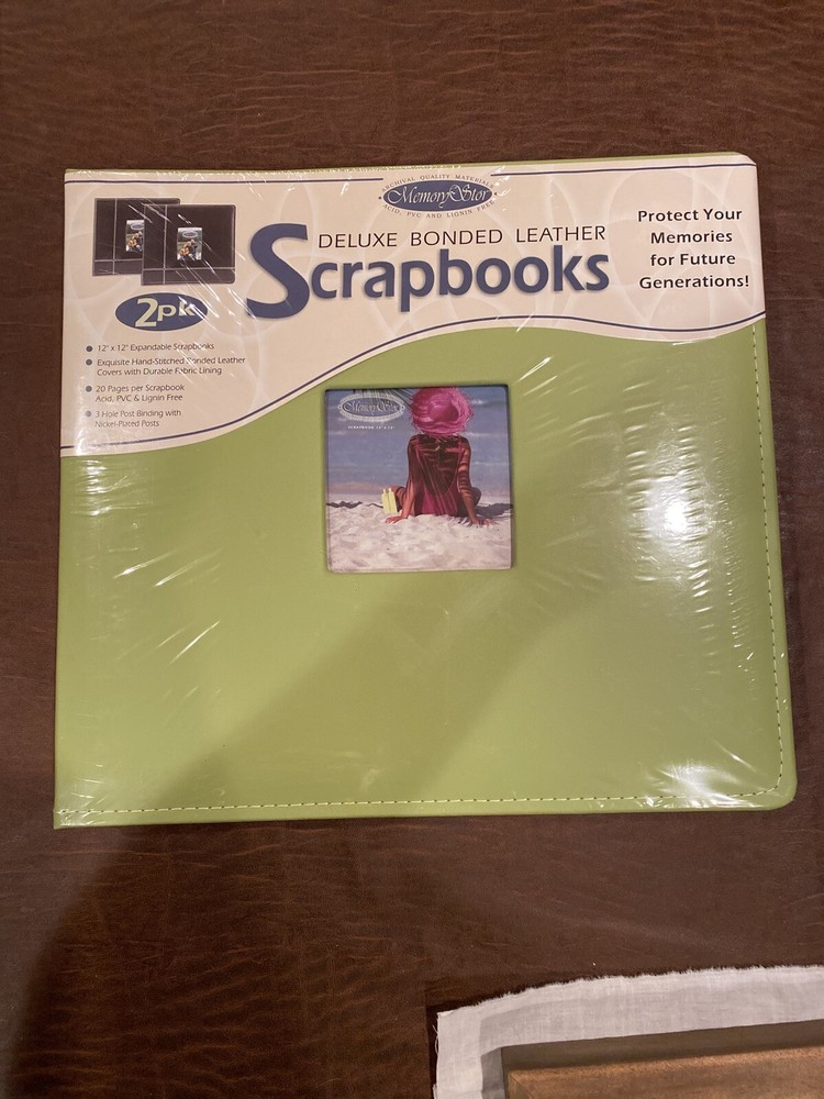 SET OF 2 DELUXE BONDED LEATHER SCRAPEBOOKS BY MEMORY STOR Green. Condition is New. Shipped with USPS Priority Mail. Sealed. Never been opened