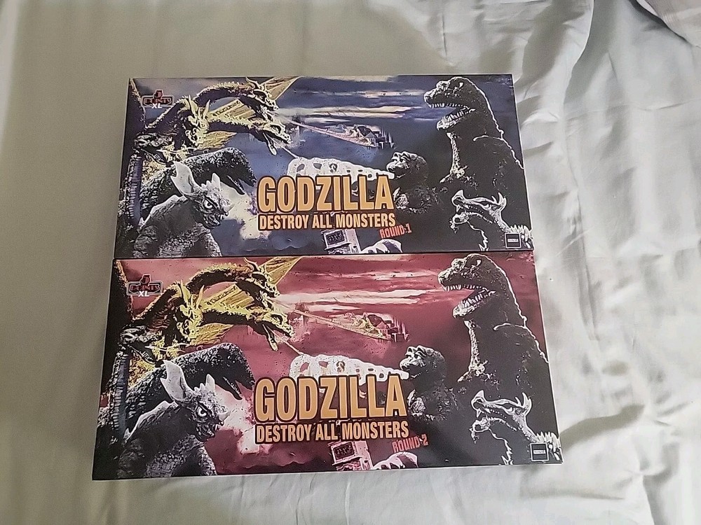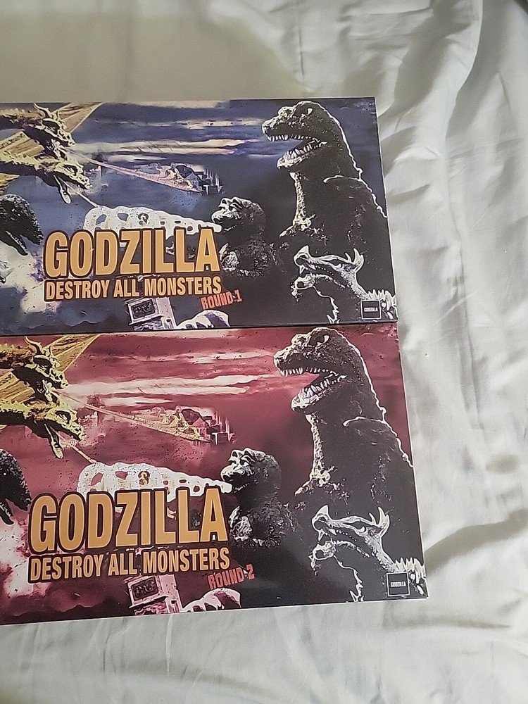 This amazing set of Godzilla action figures is a must-have for any fan of the franchise. The set includes three figures: Destroy All Monsters, Round 1, and Hedorah, all manufactured in 2022 by MEZCO 5 POINTS. Each figure is designed with incredible attention to detail and comes in its original packaging, unopened and ready to display. The Godzilla Destroy Monsters set is perfect for collectors and fans alike, with its 1st edition status and boxed design. This action figure set is an original licensed reproduction and is based on the popular Godzilla franchise. Don't miss out on the chance to own this incredible set of action figures.