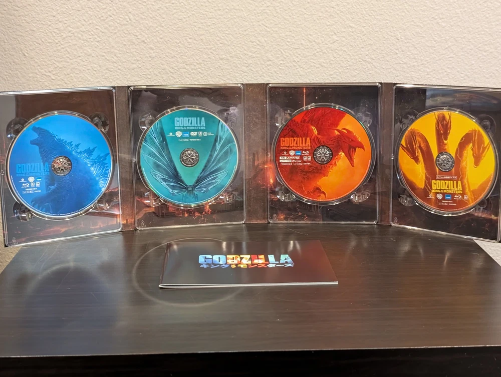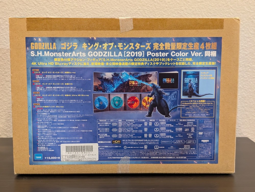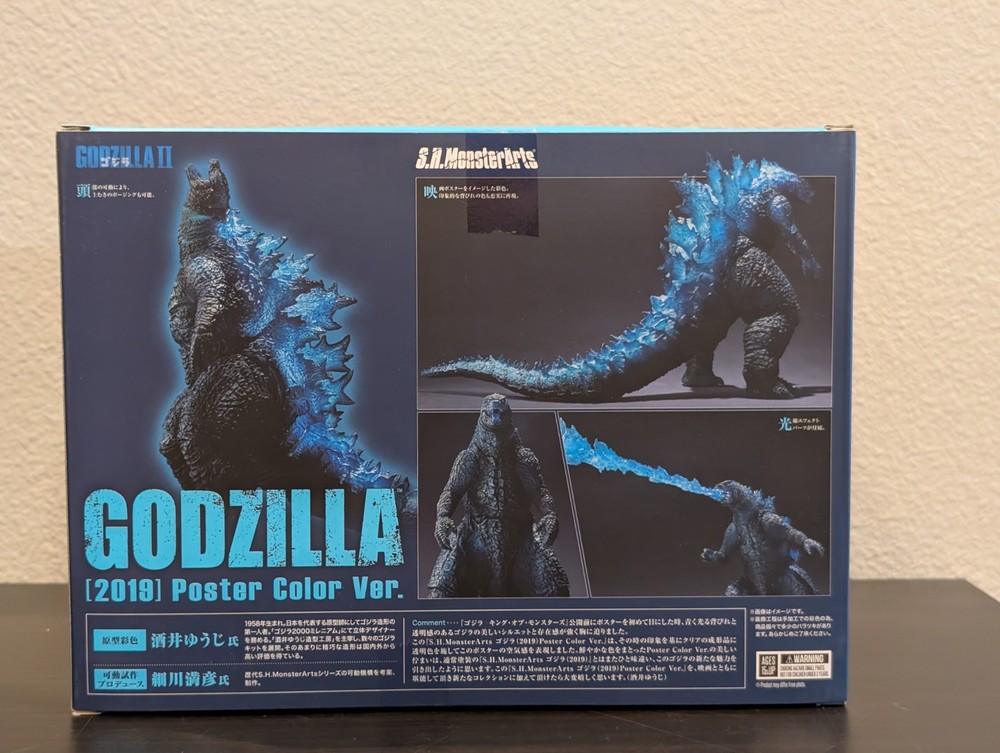 This sale includes all of the items pictured above. I will not be separating anything for individual sale in order to maintain the integrity of this limited edition figure and media set. The S.H. MonsterArts Godzilla (2019) Poster Color Ver. has been unboxed and displayed in my personal collection. It is in excellent condition and comes with a swappable jaw and atomic breath effect part. It will be packaged in its original box and brown box, as pictured. Also included is a backdrop to display behind the figure on your shelf, replicating the movie's signature poster. The DVD and Blu-ray discs have only been used once, and have since been secure in their casing. There are four discs in total plus a booklet. An optional empty steelbook is also included. Rounding out the set is a clear file folder. Upon receipt of payment I will mail out your order within 1 business day.