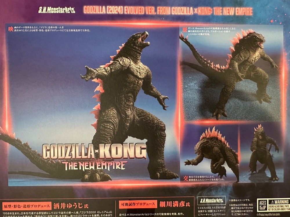 This S.H. MonsterArts action figure is a must-have for fans of the Godzilla franchise. The figure depicts Godzilla in his evolved form from the movie "Godzilla x Kong: The New Empire" released in 2024. The level of detail in this Bandai-produced collectible is truly impressive, making it a great addition to any collection.The figure is designed for collectors aged 17 years and up, and features various articulation points that allow for dynamic posing and display. With its Godzilla theme, this action figure is perfect for fans of the franchise and will make a great addition to any collection.