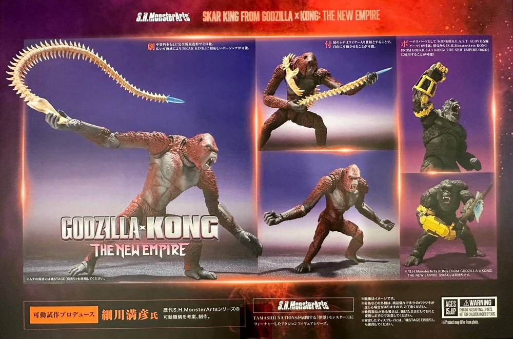 Experience the epic battles and intense rivalry between Godzilla and Kong with the S.H. Monsterarts Godzilla x Kong: The New Empire 2024 Skar King Action Figure. Made by Bandai, this highly detailed figure captures the essence of the Skar King character from the upcoming movie. Ideal for collectors and fans aged 12-16 years, this action figure is a must-have for anyone who loves the Godzilla theme.This action figure is part of the S.H. Monsterarts series and is made with high-quality materials. It features multiple points of articulation, allowing for dynamic posing and display. The Skar King Action Figure is a great addition to any collection and is sure to impress fans of the Godzilla franchise.