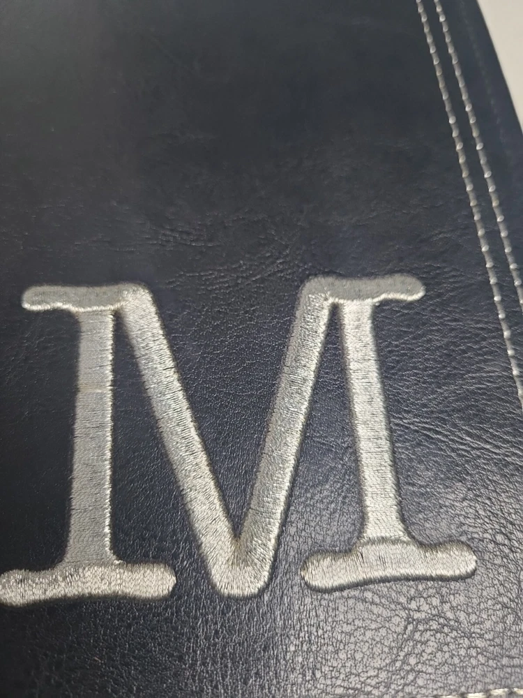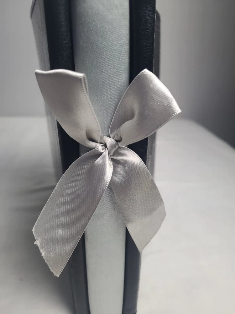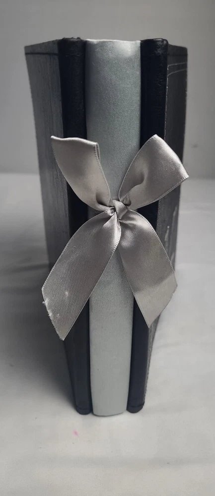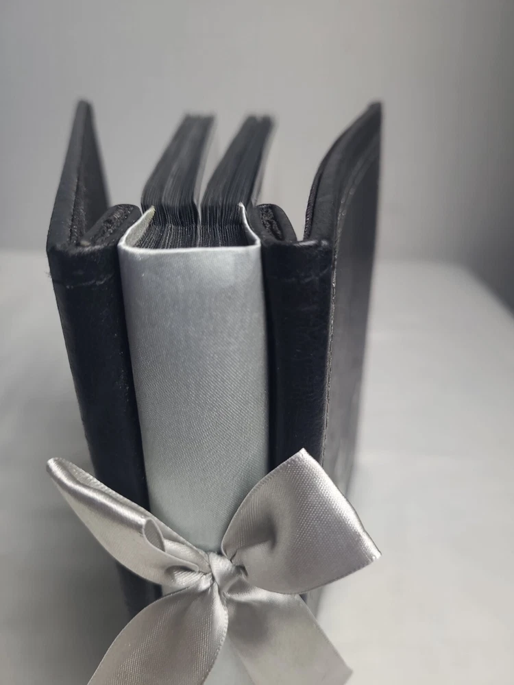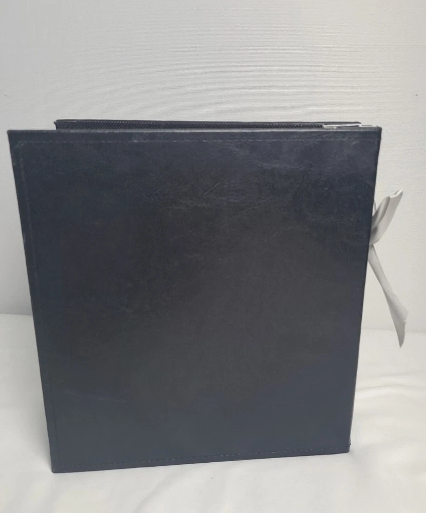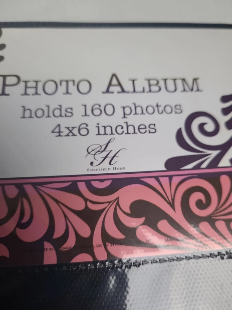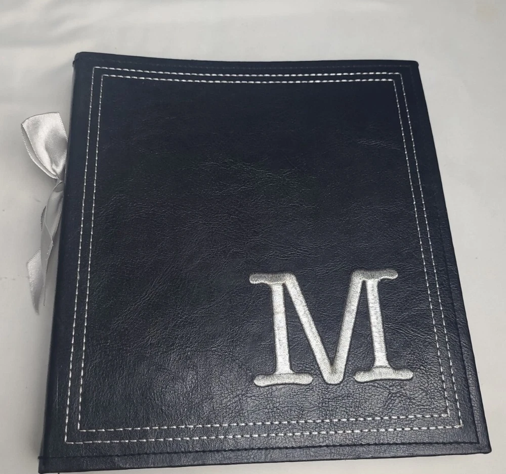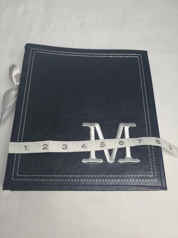 SHEFFIELD HOME BLACK PHOTO ALBUM SILVER LETTER M W SIDE BOW HOLDS 160 Photos 4X6.The album has the letter M in brilliant Silver color on the cover and double stitches as decoration, it also has a silver or gray bow as well as the part in the middle on the outside is gray in color combining with the bow and letter M in perfect condition but it has a small scratch you can see it in the photo. For Any Questions Contactme Via Email Same Bussines Day Shipping Thanks.