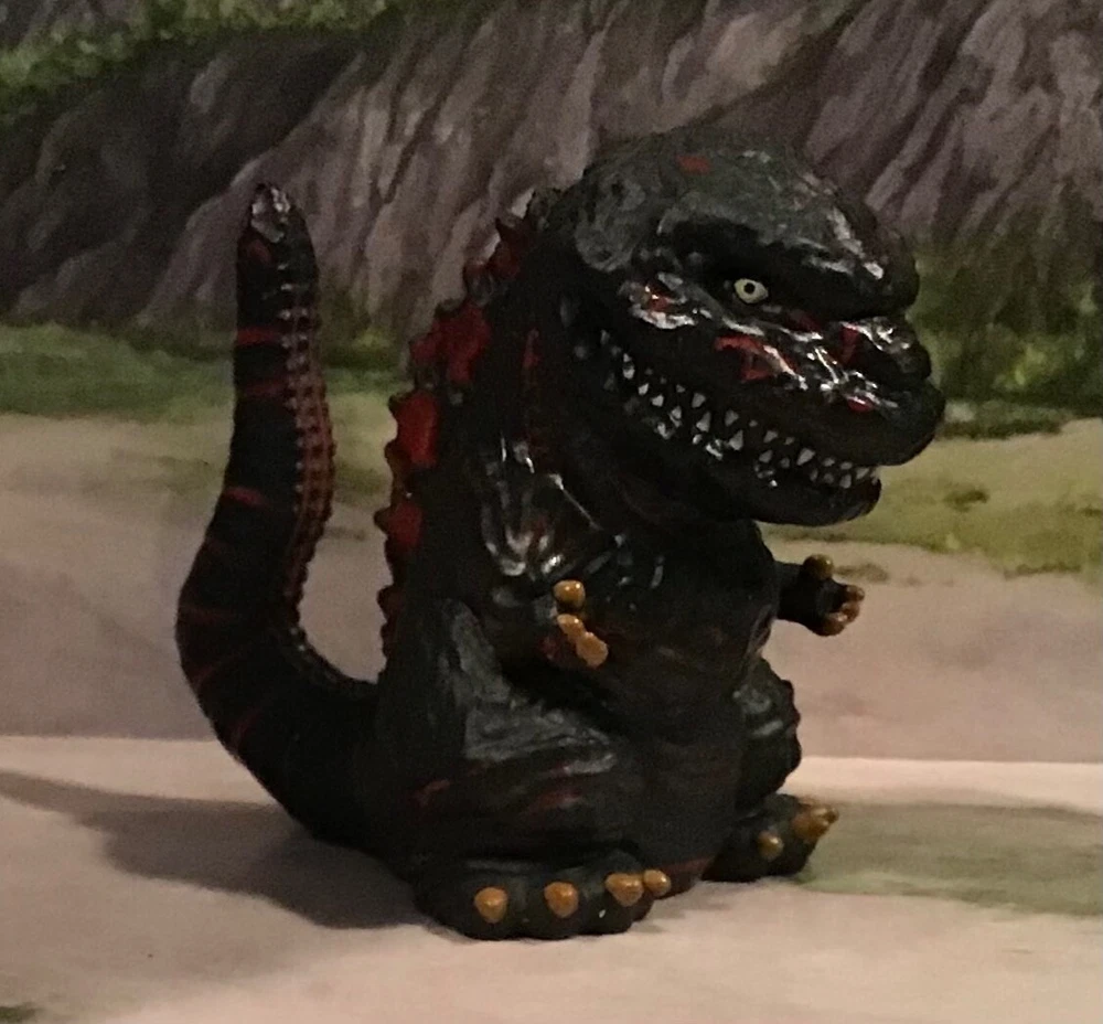 Collectors will love this awesome figure! SHIN GODZILLA Beautiful display figure about 2 inches tall Substantial in size, great sculpt! Any white areas in photos are caused by light reflecting and are not visible to the eye. This piece is sure to be a hit in any collection! loose from baggie, new condition figure