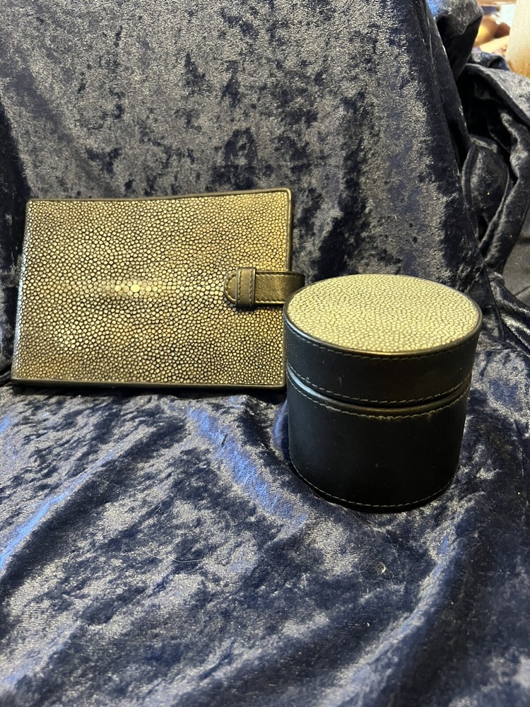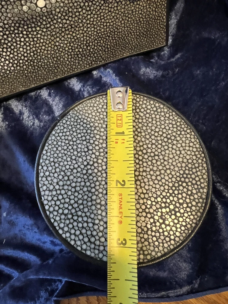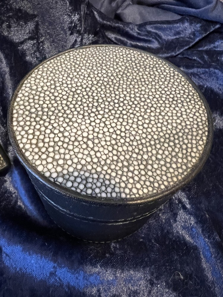 STINGRAY SKIN PHOTO ALBUM AND DRESSER BOX NOS. Items have never been used. Measurements are pictured. Please feel free to contact seller with any questions. Happy Bidding!~ T23