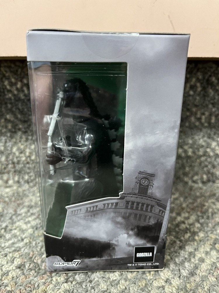 SUPER 7 REACTION GODZILLA 1954 WITH TOKYO TRAIN! SDCC 2023 EXCLUSIVE . SUPER 7 REACTION GODZILLA 1954 WITH TOKYO TRAIN! SDCC 2023 EXCLUSIVE IS NEW IN BOX. BOX HAS LIGHT WEAR BUT DOES HAVE A CRACK IN THE PLASTIC. (SEE PHOTOS) REAL NICE DETAIL LOOKS AND DISPLAYS GREAT. SEE PHOTO FOR ITEM AND CONDITION. GREAT FOR THE GODZILLA COLLECTION. ****PLEASE READ ALL OF THE FOLLOWING AUCTION BEFORE BIDDING.**** PAYMENT IS BY PAYPAL. YOU MAY ALSO CALL THE STORE TO PAY BY CREDIT CARD. ITEM DESCRIPTION: I do my best to accurately describe and picture each item. If you have questions, please email thru the auction prior to bidding. The pictures are part of the item description, so please view them...what is pictured in the auction is what you will receive, nothing more. SALES TAX : Maryland residents will be charged 6% sales tax. PAYMENT TERMS: PayPal Payment is due within 2 da ys of auction end date. If payment is not received within 48 hours, a non paying bidder alert will be filed. SHIPPING TERMS: SHIPPING IS IN US ONLY. I DO NOT SHIP INTERNATIONALLY. All items are shipped by UPS GROUND. WE COMBINE SHIPPING IF ITEMS CAN BE SHIPPED SAFELY TOGETHER. . Items that sell for over $250.00 must be shipped with signature confirmation. If you have any questions about the item, please email before bidding on or winning the auction. Thank you for doing business with THE TOY EXCHANGE, 1001 TWIN ARCH ROAD SUITE 12, MT AIRY MD 21771.