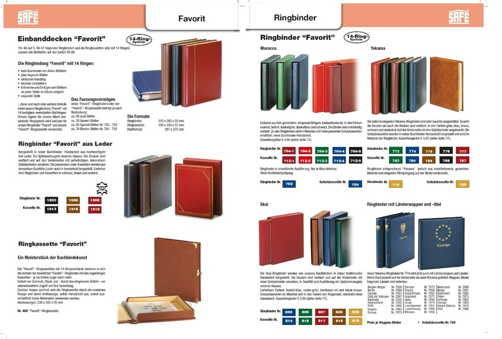 Safe 1503 leather ring binder "favorite" black with 14 ring system For the highlights of your stamps - Blocks - Letters - Banknotes - Postcards - Kafferahm cover - Collection Description: Safe 1503 Black Leather ring binder "Favorit" Cover made of real leather made in pure bookbinder handicrafts. A top product. The cover is padded on the fronts with elaborate, decorative gold decoration strips. In the colors of wine red, Braun and black. The binders are completely padded . Protective cassettes suitable for the ring binders are available in material and color. Pure bookbinder handicrafts. The ring binding "Favorite" with 14 rings : - no tearing out album leaves - Plan lying leaves - simple handling - Light turns - Removing and inserting leaves possible at any point in the album - Exquisite optics ... Our ring binding "Favorit" offers this and many other advantages with 14 high-gloss-vernickled steel rings. This ring system specially developed for our albums is used exclusively for our ring binder "Favorit" and our "favorite" ring cassette. Capacity : A favorite ring binder or a favorite ring cassette each hold: approx. 55 dual leaves approx. 35 guarantee leaves approx. 55 special leaves no. 750-754 approx. 70 Blanko sheets no. 780-793 Format : ring binder: 315 x 305 x 50 mm Ring cassette: 350 x 330 x 55 mm Blade formats: 297 x 270 mm Article no. : 1503 You can find the complete favorite program from Safe with Allen ring binders, insert leaves, special leaves and blank leaves in our shop. ring binder and protective cassettes favorite in leather: Safe 1503, 1506, 1508 Fig. 2 Safe 1513, 1516, 1518 Fig. 2 Safe 400 ring cassette favorite picture 2 ring binder Morocco, Yokama, Skai: Safe 701-1, 704-2, 704-3, 704-4, 705.5 image 2 Safe 773, 774, 775, 776, 777 Figure 2 Safe 805, 806, 807, 808 Fig. 2 Safe Countries - coat of arms - ring binder of Belgium - USA picture 2 Safe Protection cassettes favorite picture 2 Blanko leaves dual: Safe 620, 612, 614, 615, 616, 617, 618, 619, 621, 665, 605, 663, 661, 720, 719, 532, 664 Fig. Guard petals: 721, 722, 723, 724, 725, 726, 727, 728, 7240 Fig. 731, 732, 733, 734, 735, 736, 737, 738, 7241 Fig. 821, 822, 823, 824, 825, 826, 827, 828, 7242 Fig. Special leaves: 750, 753, 752, 754, 7750, 7751, 676, 7732, 7733, 7734, 7725 Fig. Safe Insert leaves for clamping cards Fig. 4 Cardboard blank leaves: 780, 781, 782, 790, 791, 792, 680, 682, 793 Fig. Protective covers 757, 756 Fig. 4 Safe Tabs transparent bags with double clamp seam Figure 4 Also for all Safe printed pages andsupplements , Annual jewelry leaves ideally suited and and ..... Good & Cheap & Reliable Images are patterns shown decoration & coins & stamps & extras are not included in the scope of delivery .. Set with For the highlights of your stamps - Blocks - Letters - Banknotes - Postcards - Kafferahm cover - Collection Cover made of real leather made in pure bookbinder handicrafts. A top product. The cover is padded on the fronts with elaborate, decorative gold decoration strips. Our ring binding "Favorit" offers this and many other advantages with 14 high-gloss-vernickled steel rings. This ring system specially developed for our albums is used exclusively for our ring binder "Favorit" and our "favorite" ring cassette. You can find the complete favorite program from Safe with Allen ring binders, insert leaves, special leaves and blank leaves in our shop. Also for all Safe printed pages andsupplements , Annual jewelry leaves ideally suited and and ..... Images are patterns shown decoration & coins Recommended products Provided by Safe 1503 + 1513 Black Leather Ring Binder Album FAVORITE + Cassette empty View item Safe 1506 Brown Leather Ring Binder Album Favorite 14 Ring Mechanism Empty View item Ring Binder Favorite Morocco Safe 704-5 Black Album 14 Ring Mechanism Empty View item Beige Ring Binder Skai Safe 809 Album Favorite 14 Ring Mechanism Empty View item Ring Binder Favorite Yokama Brown Safe 775 Album 14 Ring Mechanism Empty View item Red Ring Binder Skai Bordeaux Safe 807 Album Favorite 14 Ring Mechanism Empty View item Ring Binder Favorite Morocco Safe 704- 2 Light Red Album 14 Ring Mechanism Empty View item Ring Binder FAVORIT Yokama Black Safe 776 Album 14 Ring Mechanism Empty View item