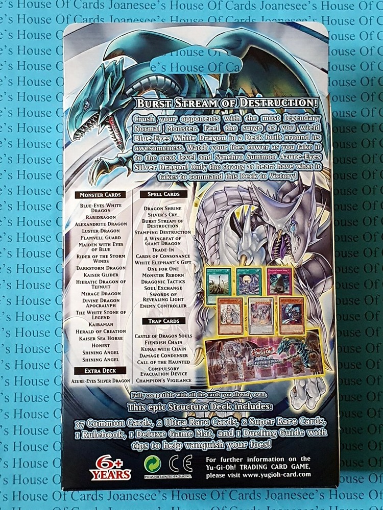 This is a brand new factory sealed Saga of Blue-Eyes White Dragon Structure Deck English 1st Edition See below for list of cards. This excellent structure deck contains: 37 Common Cards 2 Ultra Rare Foil Card 2 Super Rare Foil Cards 1 Deluxe Game Mat 1 Rulebook 1 Dueling Guide Obviously all cards will be new/unplayed, totally original and would make an excellent present for anyone, whether just starting out or wanting some of the Dragon Support cards for their decks! Totally Original Konami (or your money back!) I will deliver in safe packaging to keep it in perfect condition. Ideal for collectors (or players). Check out my other Yu-Gi-Oh Items, Check out my other items! I combine postage on multiple items! Be sure to add me to your favorites list!