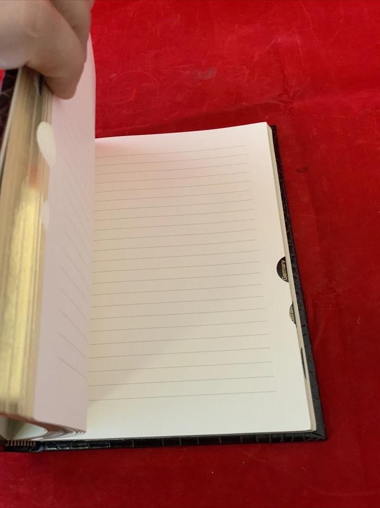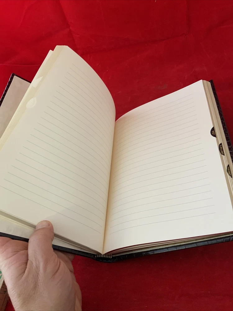 Note a few wear marks on top right in third picture . Book is unused inside . Has some page creasing from storage ....