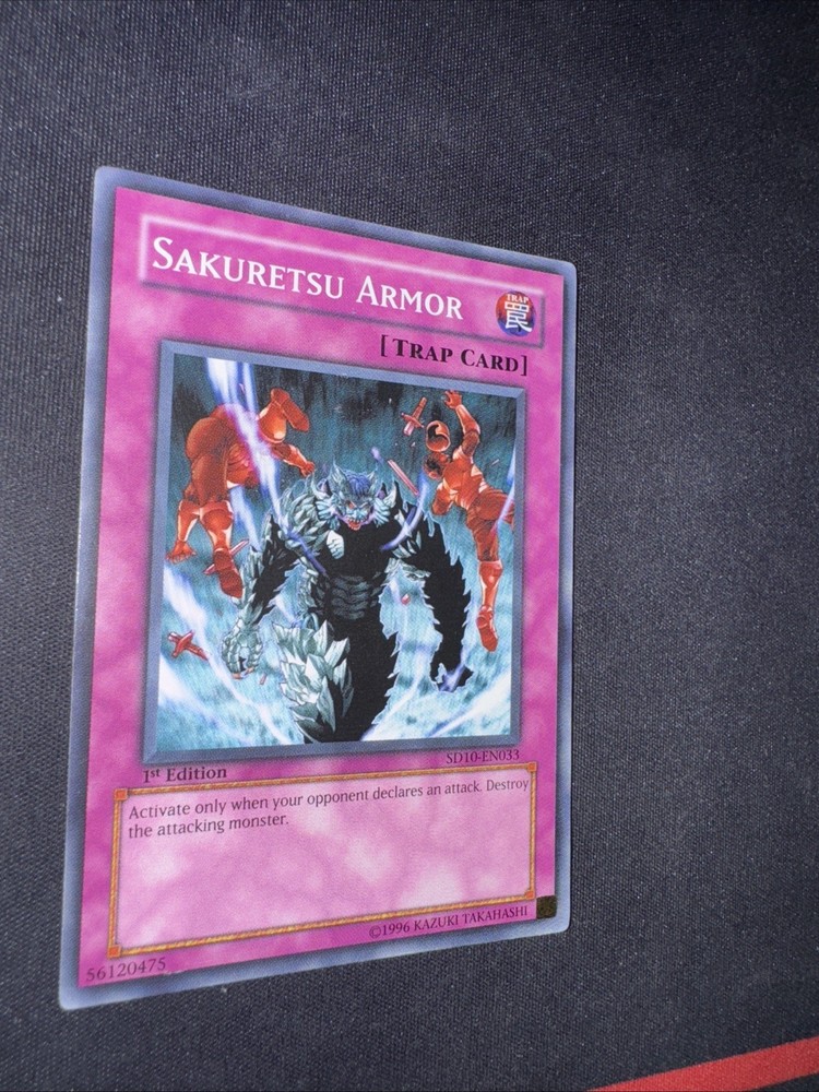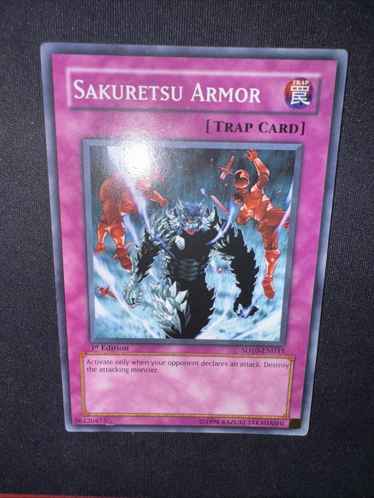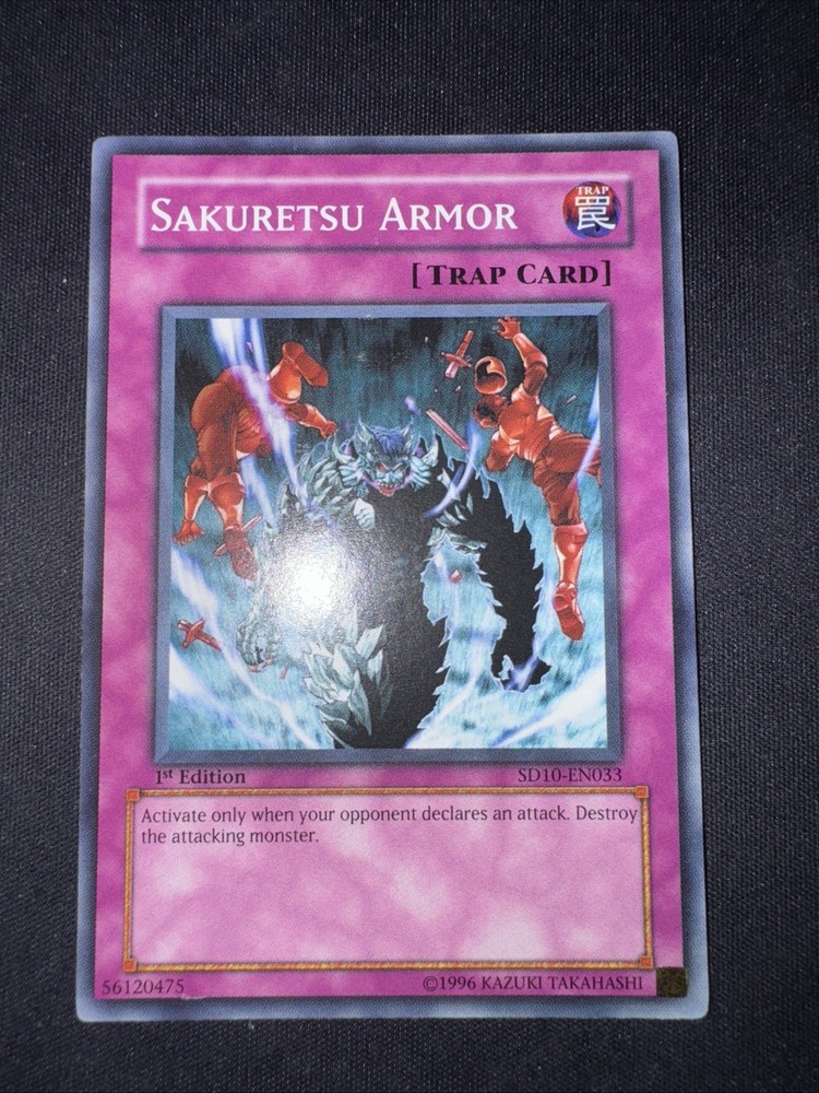 Level up your Yu-Gi-Oh! TCG collection with the Sakuretsu Armor SD10-EN033 from the Structure Deck: Machine Re-Volt 1st Edition. This Trap-Normal card is a staple for any deck, providing a defensive advantage in battle. Its rarity as a Common / Short Print makes it a unique addition to your collection. The card is in English and manufactured by Konami. With an attack power of 0 and defense toughness of 0, Sakuretsu Armor is a perfect card to compliment your existing deck. Don't miss out on the chance to own this 1st edition gem.
