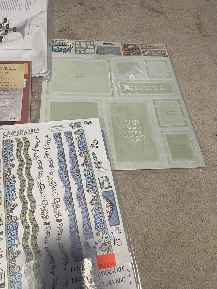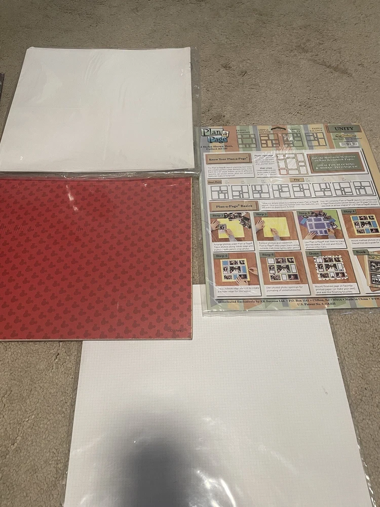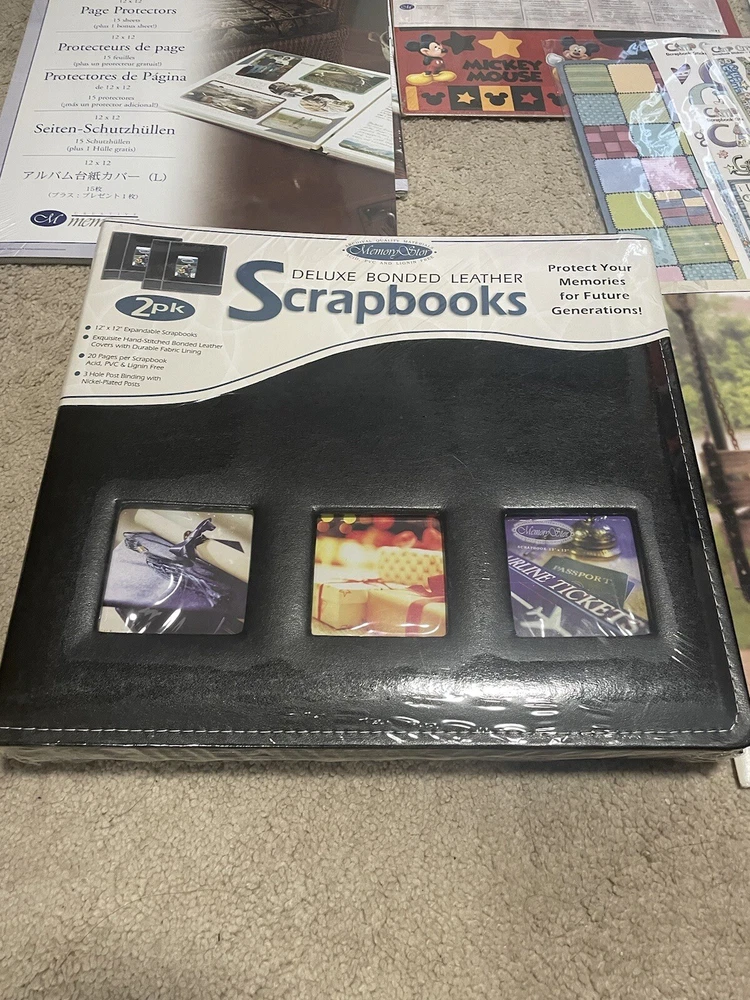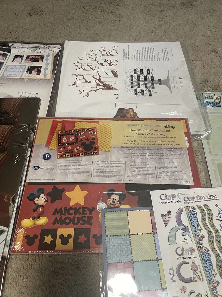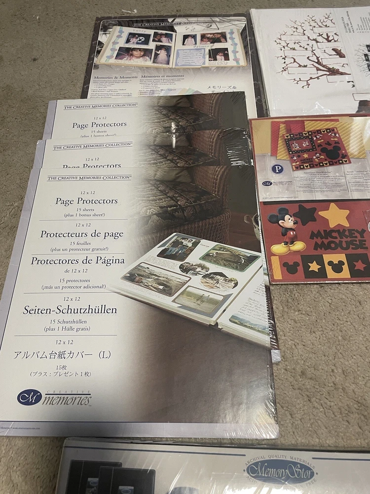 Lot includes… *NIB deluxe bonded leather scrapbooks 2 pack (memory stor) *NIB creative memories natural impressions *camp grandma stickers and pages *NIB Disney done with one assortment. Mickey and the gang. * 3 NIB 12x12 page protectors *NIB plan a page * family tree templates * creative memories: memories and moments Lot includes everything in pics. Almost everything is sealed and never opened. Kept in a dry, smoke free home. Feel free to message with any questions. Same day shipping!