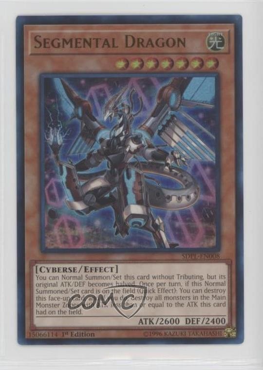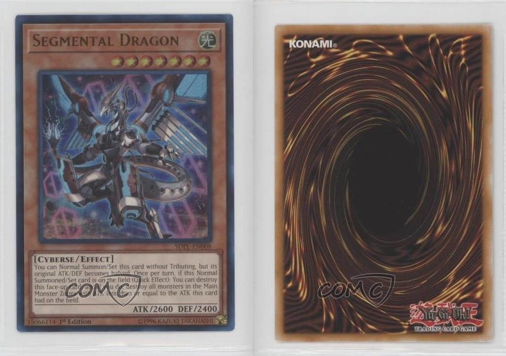 2018 Yu-Gi-Oh! Structure Deck: Powercode Link - [Base] - 1st Edition #SDPL-EN008 Segmental Dragon COMC Item: 172310120 - YuGiOh Card Search for more: 2018 Yu-Gi-Oh! Structure Deck: Powercode Link Search for more: 2018 Yu-Gi-Oh! Structure Deck: Powercode Link - [Base] - 1st Edition View all of our Listings Auctions Buy It Now About Us Located in the beautiful Pacific Northwest, COMC (Check Out My Cards) is the world's largest consignment service for trading card singles. More than 10,000 people have used our consignment service to list over 50 million trading cards. Find out how we can help you consign your items on eBay by contacting us through eBay messaging. COMC -- "The Safe & Easy Way to Buy & Sell" Raw Condition for Modern Cards Unless otherwise noted, raw modern cards are listed in Near Mint-Mint condition or better. A NM-MT card appears to be Mint at first glance, but upon closer inspection, may exhibit some of the following: minor print defects (e.g. roller marks, print line, dimple), minor scratches, slight edge wear, and slight corner wear. Centering is clearly visible in the images provided and does not factor into our condition assessment. Raw Condition for Vintage Cards Unless otherwise noted, raw vintage cards are listed in Excellent condition or better. An EX card may exhibit some of the following: minor rounding of corners, surface wear, print defects, light scratches, and slight edge wear/chipping. Centering is clearly visible in the images provided and does not factor into our condition assessment. Domestic Shipping Combined shipping for multiple items is available. To receive combined shipping, please ensure all desired items are in your eBay shopping cart before proceeding to checkout. eBay limits orders to 40 items per order. We automatically combine multiple orders placed on the same day. If you place multiple orders on the same day, please contact us to request a refund of applicable shipping costs. Signature confirmation may be required on invoices over $400. All cards are protected and shipped securely. International Shipping COMC offers eBay's International Shipping (EIS) for international orders under $2,500* (see country exceptions below). All duties and import fees are paid at checkout; in the rare event that there are additional import fees upon delivery, these are borne by the buyer. EIS packages route through a shipping hub in Erlanger, KY before shipping to their final destination. Please note that EIS does not allow for combined shipments. The shipping rates are determined by eBay and cannot be adjusted. *Maximum sale price exceptions: Colombia, Kuwait ($2,000); Taiwan ($1,539); Chile, Costa Rica, Guatemala, Honduras, Trinidad and Tobago ($1,000); Antigua and Barbuda, Aruba, Belize, Dominica, Grenada, Philippines, Saint Kitts and Nevis, Saint Lucia, Montserrat, Turks and Caicos Islands ($500); Dominican Republic, El Salvador ($200). Please request a shipping quote through eBay messaging for orders that exceed the maximum sale price supported by eBay's International Shipping. You will be responsible for all duties and import fees for international orders shipped outside the EIS. All cards are protected and shipped securely. Payment COMC does not accept offers on our cards through our eBay storefront. COMC utilizes eBay’s managed payments system. If you are experiencing difficulties making a payment, please contact eBay for assistance. Return Policy Returns are only accepted on the rare occasion the item is not as described. If you are making a return, please initiate the return process through eBay so a mailing label can be provided for you. Prior to listing, our expert team carefully assessed this item to represent it accurately. Please review the description and high-definition images prior to purchasing to ensure this item meets your satisfaction. We welcome you to contact us if you have further questions about this item. Trust and Integrity COMC carefully assesses each item consigned to us to prevent fraudulent items from entering the marketplace. If you believe an item offered on COMC may be fraudulent, please contact us with details so we can investigate the issue. Items we determine are outside our supported items policy may be removed. Last Modified: 6/3/2025 6:55:54 AM PDT