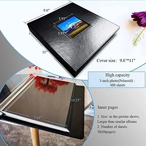 Welcome To My Store Fast Express Free Shipping Self-Adhesive Photo Album 60 Black Pages Self-Stick Leather Cover for Family DIY Product Description Product Name : Self-Adhesive Photo Album Unit Quantity : 1 Material : Faux Leather, Stainless Steel, Leather, Plastic Total : 30 sheets (60 pages) Album cover size : 11X10 inch (28X25 cm) Black page size : 7.6X10.2inch (19.4X26cm) Color : Black Specific instructions for use : Photo Album Style : Magnetic Shape : Rectangular Size : 11inchesX10inches Note: Doesn't fit for 8X10" photos Item color displayed in photos may be showing slightly different on your computer monitor. Due to the different measurement methods,size may have 0.3-0.7 inches error. Doubled high-grade PU leather + stainless steel nails The superb sewing process and double PU leather cover which are resistant to tear, more durable than linen, paper and single layer leather cover. It makes the photo album much stronger. The stainless steel nails, which do not rust and are more durable. Your photos can be better protected. NON-FADING: WATERPROOF DUST PROOF AND AIRTIGHT This self-adhesive photo album consists of 30 sheets(60 pages) of black self-adhesive cardboard and plastic films. No corner stickers, perfect self-adhesive film design and high quality inner pages can protect photos and text well from water, dust and air. It will not fade for years, perfect for writing, durable, suitable for long term storage. Dust-free, air-free, glue free acid. LARGE CAPACITY Cover size: 11X10 inch (28X25 cm); inner black page size: 7.6X10.2 inch (19.4X26cm). A total of 60 pages (30 sheets) of self-adhered pages that can hold 480 Polaroid photos (8.6X5.4cm) in total. It can hold all sizes of photos such as 3X5", 4X6", 5X7", 6X8" (doesn't fit for 8X10") and any tickets you wanna keep. MULTI FUNCTION GIFT On the cover of the album there is one 3.93X3.93" window. You can define the topic according to your wishes. Ideal gift for Valentine's Day, Christmas, Anniversary, Mother's Day, Thanksgiving Day, Birthday, Graduation and so on. It could also be used as a Travel Record, Wedding Album, Baby row Album. A memory book of your own adventures, 100% Satisfaction This is a DIY album, you can fully let your imagination go wild and keep the best memories safe and sound. It will be a perfect photo album for recording your wonderful moments. ------------ Package Contents------------ Package: 1 * Self-Adhesive Photo Album Payment We accept every payment method that ebay allows for transactions. About Shipping We offer FREE shipping on all orders! Once we have received a full payment,your items will be dispatched in 48-72 hours. Tracking information will be updated on the ebay system after shipping. We ship within 5 business days of payment, usually sooner. We use a selection of shipping services such as UPS, FedEx, USPS etc. Feedback Your feedback is very important to us: 1. Please leave positive feedback if you are satisfied with our items and service. 2. Please feel free to contact us first before you leave neutral or negative feedback.We will try our best to resolve the issues. Please give us the opportunity to resolve any problem.