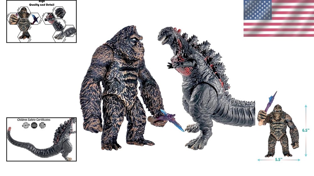 Set of 2 Shin Godzilla vs King Kong Action Figures Vinyl Movie Series Toy ‹ › ‹ › ‹ › ‹ › ‹ › ‹ › ‹ › ‹ › ‹ › Bring the Epic Battles Home with Stunningly Detailed Collectibles Capture the intensity of the legendary battles from 2016: Shin Godzilla and 2021: Godzilla vs. Kong with these high-quality figures. Standing 6.5 inches tall and 11 inches long, Shin Godzilla commands attention, while King Kong stands tall at 6.5 inches, ready to defend his territory. Crafted with attention to detail, these collectibles are perfect for fans and collectors alike. Superior Quality – Certified safe with CPC, ASTM F963-16/17, and CPSIA standards. Made with environmentally friendly, non-toxic, non-radioactive, and waterproof materials. Perfect for Collectors – Detailed designs bring your favorite Kaiju characters to life. Ideal Size – Compact yet impressive, making them perfect for display or play. Worry-Free Shopping – Support is available within 12-24 hours for inquiries and replacements. Limited stock available! Don’t miss your chance to own these iconic figures and relive the cinematic battles. Elevate your collection with high-quality, officially certified figures that stand out and last. Shop with confidence – Fast support, guaranteed satisfaction, and a commitment to quality. Order now and bring the epic battles home! Recommended Age Range: 12-16 Age Level: 4-7,12-16,17 & Up,3-4,12 & Under,1-2,8-11 Theme: Godzilla