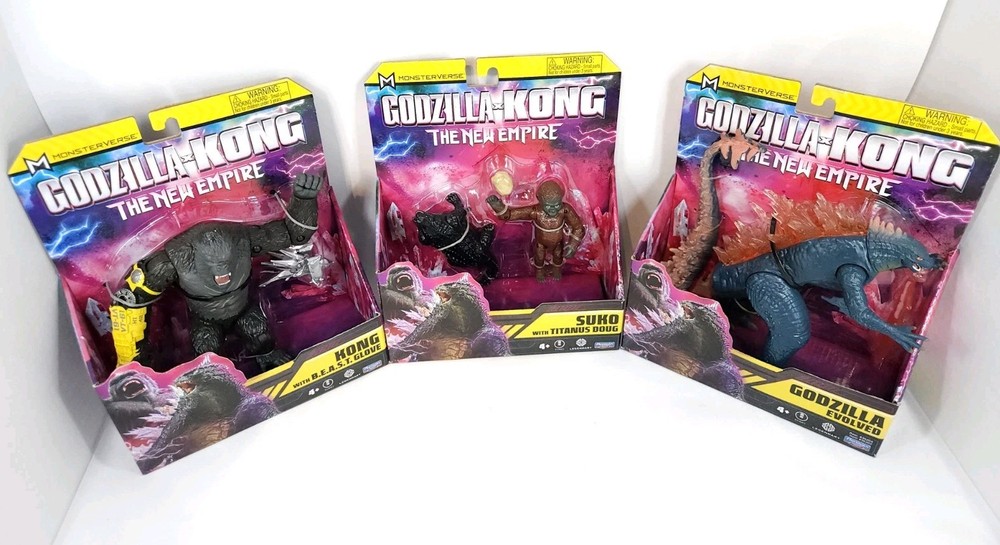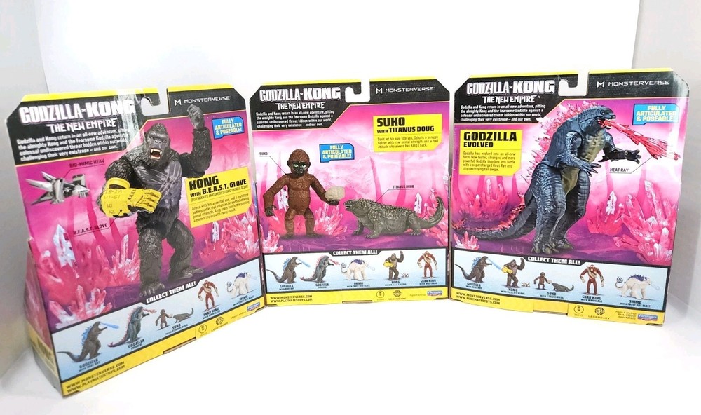 🦖🦍 Set of 3 Godzilla x Kong 6" Figures - Godzilla Evolved, Kong & Suko 🪙🔥 🔥 Product Description Return to Hollow Earth with this ultimate Godzilla x Kong collectible 3-pack featuring: • Godzilla Evolved with Heat Ray • Kong with B.E.A.S.T. Glove • Suko with Titanus Doug Each 6-inch figure is crafted with movie-accurate detail and dynamic articulation to recreate your favorite scenes from Godzilla x Kong: The New Empire . Perfect for display or play! ✅ Key Features 🎬 Officially Licensed Movie Figures – Inspired by the 2024 film 🦖 Godzilla Evolved – Includes detachable Heat Ray breath accessory 🦍 Kong with B.E.A.S.T. Glove – Battle-ready with authentic detail 👊 Suko with Titanus Doug – Includes signature boulder & tiny titan ally 🌀 Fully Articulated – Poseable for action scenes and display 🧱 Collector Packaging – Themed boxes for fans and collectors 🎁 Great Gift – Ideal for fans aged 4 and up 📦 What’s Included 1x Godzilla Evolved with Heat Ray 1x Kong with B.E.A.S.T. Glove 1x Suko with Titanus Doug 🛒 Why Buy From Us? ⭐ Positive Store Reviews – Trusted by happy collectors 📦 Carefully Packed – Secure shipping for your items 🔄 30-Day Returns Accepted – Hassle-free returns for peace of mind 📌 Item Specifics Brand: Playmates Toys Franchise: Godzilla x Kong Characters: Godzilla, Kong, Suko, Titanus Doug Scale: 6 Inch Recommended Age: 4 Years & Up Condition: Brand New in Original Packaging Theme: Monsters, Movie & TV Packaging: Original (Unopened) 💬 Questions? Send us a message anytime — we're happy to help! 🕹️ Don't miss out — limited stock available! Add this monstrous trio to your collection today! Godzilla x Kong: 6" Suko Figure with Titanus Doug by Playmates Toys Product details Return to Hollow Earth with Godzilla and Kong in an all-new adventure! When a colossal threat is discovered within our world, Godzilla and Kong must fight to protect their existence—and our own. The Godzilla x Kong 6” Suko with Titanus Doug Figure brings the Son of Kong to your collection, with epic new details that capture his movie look. Set includes Titanus Doug Figure and comes in a unique Godzilla X Kong package! AUTHENTIC: The Godzilla x Kong 6” Suko and Titanus Doug Figures are highly detailed with intricate designs to capture the essence of the Son of Kong and his tiny-yet-mighty ally. From Suko’s boulder accessory to his realistic expression, every detail is made to match the new movie, ensuring an authentic representation of this iconic character BATTLE POSES: Standing 6” tall, the Suko figure is ready to reign over any display or play setting. With multiple points of articulation and his signature handheld boulder, Suko is ready for action, so you can recreate your favorite scenes from his epic battles TINY TITAN: Titanus Doug is ready to steal the show—and some food from Kong! Bring home the action with Hollow Earth’s favorite titan, decorated to match his movie design COLLECT THEM ALL: Complete your monstrous collection with other figures and accessories from the new Godzilla x Kong line. Choose from a wide range of characters, including old allies, dangerous foes, and new challengers to recreate epic battles and awesome new adventures! Build your very own MonsterVerse with Playmates Toys Godzilla x Kong: 6” Kong Figure with B.E.A.S.T. Glove Accessory Action Figure set by Playmates Toys Product details Return to Hollow Earth with Godzilla and Kong in an all-new adventure! When a colossal threat is discovered within our world, Godzilla and Kong must fight to protect their existence—and our own. The Godzilla x Kong 6” Kong brings the King of Skull Island to your collection, with epic details that capture his new movie look. Set includes Kong’s B.E.A.S.T. Glove and comes in a unique Godzilla X Kong package! The Godzilla x Kong 6” Kong figure is highly detailed with intricate designs to capture the essence of the King of Skull Island. From his destructive B.E.A.S.T. Glove to imposing figure, every detail is made to match the new movie, ensuring an authentic representation of his iconic character. Bring the action home with Kong’s destructive B.E.A.S.T. Glove. The B.E.A.S.T. Glove is highly detailed to match his movie design, adding a realistic element to your playtime or display. Standing 6” tall, the Kong figure is ready to reign over any display or play setting. With multiple points of articulation, Kong is ready for action, so you can recreate your favorite scenes from his epic battles. Complete your monstrous collection with other figures and accessories from the new Godzilla x Kong line. Choose from a wide range of characters, including old allies, dangerous foes, and new challengers to recreate epic battles and awesome new adventures! Build your very own MonsterVerse with Playmates Toys Godzilla vs. Kong Collectible Unisex 4 Years & Up, Multicolor AUTHENTIC: The Godzilla x Kong 6” Kong figure is highly detailed with intricate designs to capture the essence of the King of Skull Island. From his destructive B.E.A.S.T. Glove to imposing figure, every detail is made to match the new movie, ensuring an authentic representation of his iconic character GLOVE ACCESSORY: Bring the action home with Kong’s destructive B.E.A.S.T. Glove. The B.E.A.S.T. Glove is highly detailed to match his movie design, adding a realistic element to your playtime or display BATTLE POSES: Standing 6” tall, the Kong figure is ready to reign over any display or play setting. With multiple points of articulation, Kong is ready for action, so you can recreate your favorite scenes from his epic battles COLLECT THEM ALL: Complete your monstrous collection with other figures and accessories from the new Godzilla x Kong line. Choose from a wide range of characters, including old allies, dangerous foes, and new challengers to recreate epic battles and awesome new adventures! Build your very own MonsterVerse with Pl