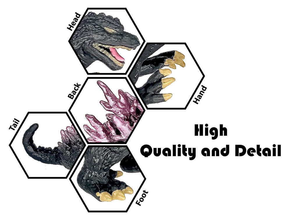 This set is great for themed-Godzilla parties, includes: Mecha King Ghidorah, MechaGodzilla, King Ghidorah, Godzilla 2000 The great Godzilla set for Godzilla fan and themed-Godzilla parties: King Ghidorah, Mecha King Ghidorah, MechaGodzilla, Godzilla 2000 Up to 4 inches in height, up to 5 inches in length High Quality and Details 【Superior Quality】Passed CPC Children Safety Certificate, ASTM F963-16/17 and CPSIA standards. Environmental friendly, nontoxic, non-radioactive and waterproof. 【Worry-free shopping】We offer the Professional Customer Support: reply to your inquiry within 12-24 hours, send replacements within next 12-24 business hours. If you have any issues about your purchase, please give us a chance to make things right. We will be more than happy to assist you.