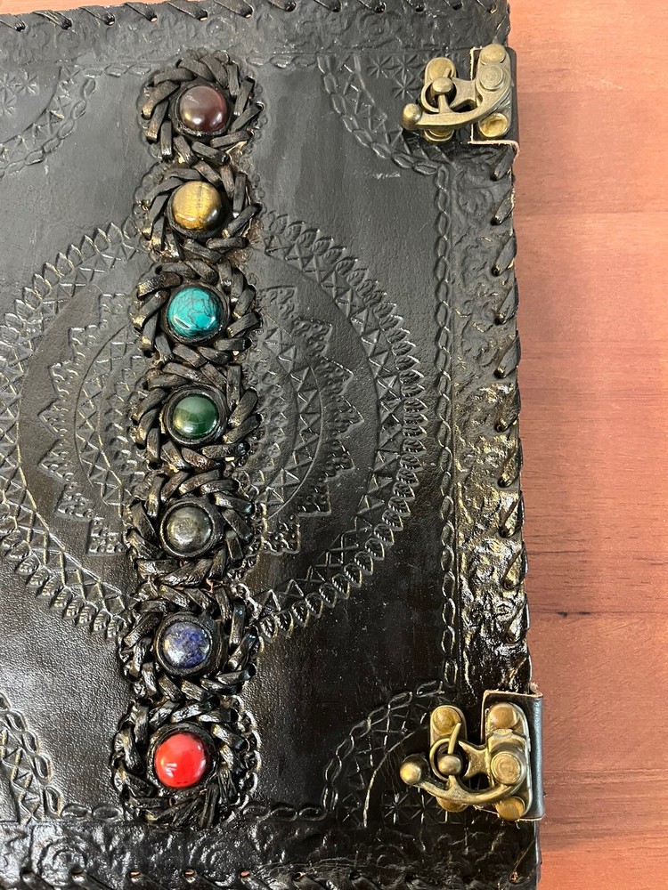Leather Journal Seven Stone Chakra Notebook Blank Bound Papers Book of Shadows This item was stocked and some paper sheets have stained....