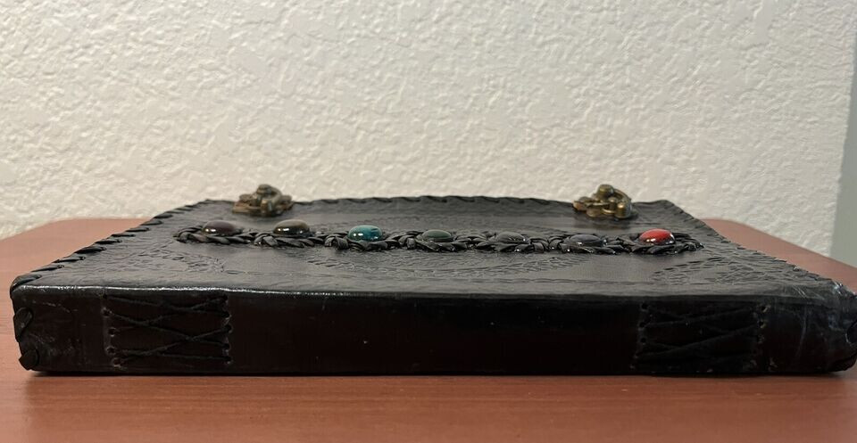 Leather Journal Seven Stone Chakra Notebook Blank Bound Papers Book of Shadows This item was stocked and some paper sheets have stained...