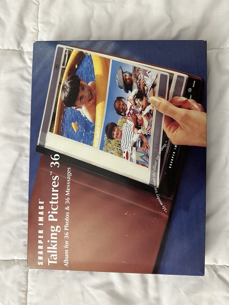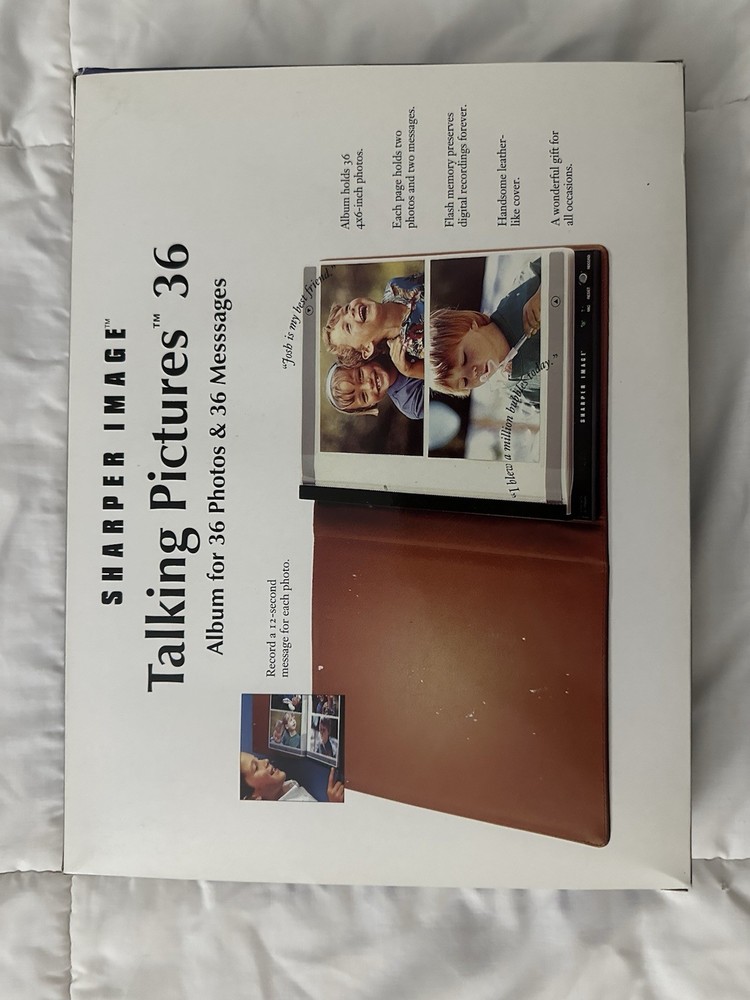Capture and preserve your cherished memories with the Sharper Image Talking Pictures album. Designed to hold 36 4x6 photos, this digital photo album is not just a place to store your pictures; it's a storybook of your life. The album features a sophisticated brown leather cover that complements any decor, making it an ideal addition to your coffee table or bookshelf.With its unique talking feature, the album allows you to associate messages with your images, bringing a whole new dimension to sharing your stories. Whether you're archiving family events, showcasing your travels, or simply documenting your everyday moments, this album from Sharper Image offers a blend of functionality and style for everyone.
