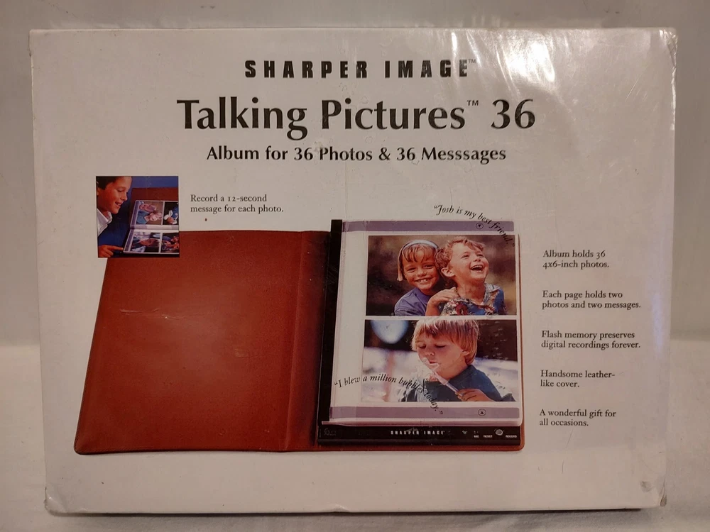 Sharper Image Talking Pictures 36: Album for 36 Photos & Messages. From a clean and smoke free home. New, still sealed in original packaging. Please see pictures for details....