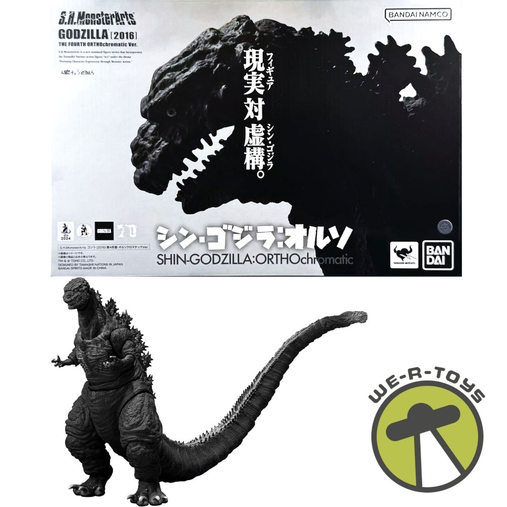 Shin Godzilla - Godzilla 2016 The Fourth ORTHOchromatic S.H.MonsterArts Figure A monochrome version of Godzilla 2016 approaches to represent the black and white remake of "Shin Godzilla", the film "Shin Godzilla: ORTHO"! Using the 3D data from the film, this figure was sculpted and colored by the designer Takayuki Takeya to represent this black and white film's representation of Godzilla 2016. The wide range of motion of the figure allows for posing fitting of name GODZILLA 2016 THE FOURTH ORTHOchromatic Ver. Look for origin of shipment: Only items shipped from within North America are being sold by authorized U.S. Retailers. The product box will have a Bandai Namco warning label, which is proof that you are purchasing an officially licensed Bandai Spirits product, distributed by its sole and authorized distributor (Bandai Namco) for the U.S. Markets. This product has been thoroughly tested for safety and meets all North American consumer product safety regulations. B0D3W6XS28 Brand new & in mint condition including the box. Please zoom in on the pictures to see condition details. Brand New. Case Fresh! Box is in mint to near mint condition. Thanks for shopping with Keith & Deb at We-R-Toys All of our items are from a clean, smoke free, pet free environment. We ship FAST and Pack with CARE