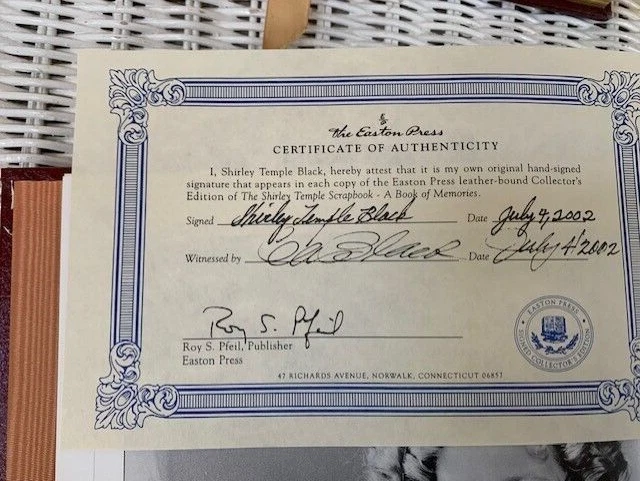Shirley Temple Stamp Panels Collection 2000 Hardcover Beautifully illustrated. The Shirley Temple Scrapbook with COA signed by Shirley Temple Black in 2002, leather bound. Child Star, leather bound, 1988 (printed in 1996) signed by Shirley Temple Black, 4,875 of 5,000. We keep all our sales items in a non-smoking and temperature/humidity controlled environment. We insure all our shipped items. We have other great collectable items (dolls, figurines, prints, militaria, etc..) on our auction site so please take a few minutes to check out the great bargains. Thanks!