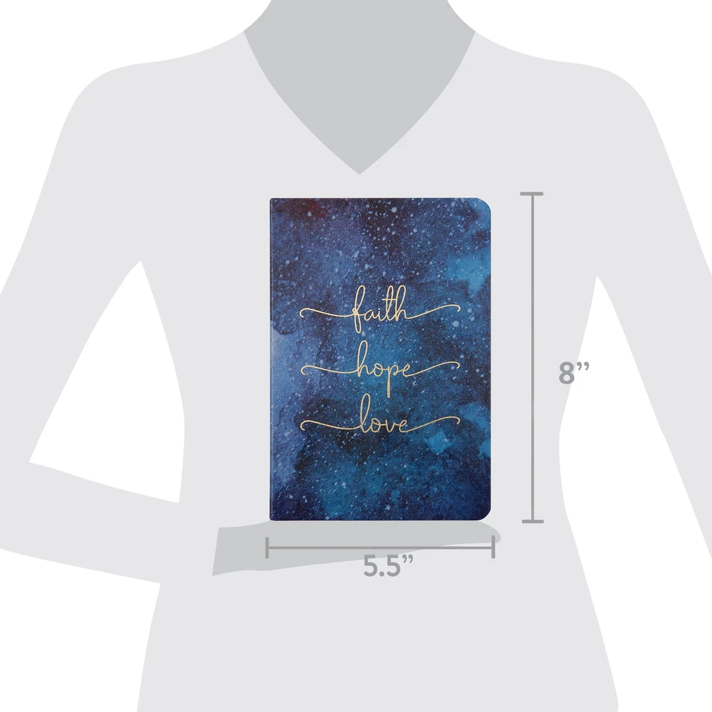 Open a world of creative faith and worship with the Simulated Leather Faith Journal. You'll always have a place to capture inspiring thoughts and record affirmations with this meaningful notebook. This hardcover journal is the ultimate stylish space to write sermon notes and prayer requests. Fill the unlined pages with encouraging scripture that will keep your handwritten notes neat and organized. Wood-free, recycled paper provides a smooth writing surface that won't yellow with age and takes pen and pencil beautifully. A sturdy, hard cover with rounded corners protects pages from tearing or coming loose. These faith journals come in an array of lovely, charming designs to reflect your personal style and add a pop of personality to your prayers and thoughts. Choose from an assortment of gold-embossed text designs with motivational phrases that will provide daily encouragement. The Simulated Leather Faith Journal is a wonderful way to deepen your relationship with your faith. Simulated Leather Faith Journal: Ideal for recording affirmations, taking sermon notes, or jotting down ideas Stylish, hard-bound cover helps paper from coming loose or tearing Quality paper takes ink and graphite beautifully Journal features rounded corners, improved binding, and unlined paper Hardcover notebook journal in unruled format Fashionable, hardcover journal offers personalized style Perfect for gifting with embossed, inspirational text Made of recycled paper and polyurethane Wood-free paper Product Dimensions: 8"L x 5.5"W