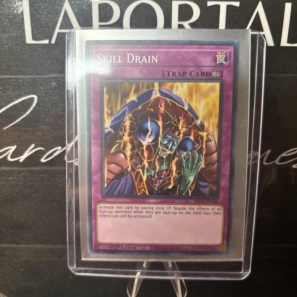 The Skill Drain SR13-EN040 Structure Deck: Dark World 1st Edition is a collectible card game product for Yu-Gi-Oh! TCG enthusiasts. This card, manufactured by Konami, belongs to the Trap-Continuous category and features the Skill Drain card name. As a Common/Short Print card from the 1st Edition set, it offers a unique addition to players looking to enhance their gameplay experience in the dark world of the Yu-Gi-Oh! TCG.