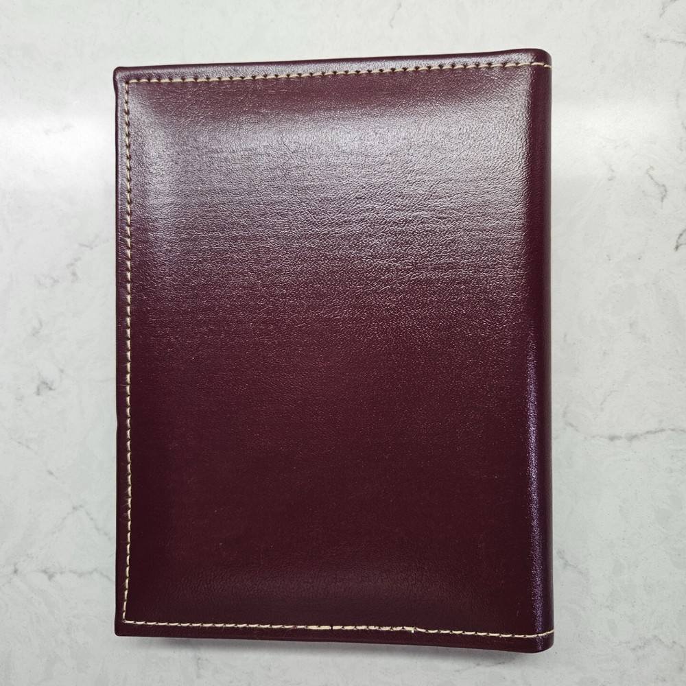 Never used burgundy leather brag book photo album. Has 12 pages to hold a max of 24 photos. 6 1/2" tall and 5" wide.
