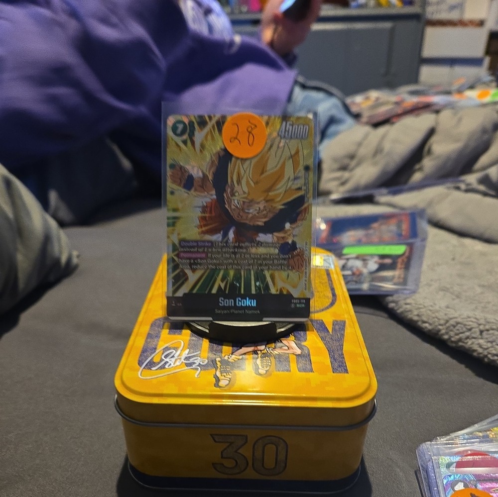 The Son Goku FB05-119 Secret Rare New Adventure Dragon Ball Super TCG Card is a highly sought-after collectible featuring the iconic character Son Goku in a special edition design. This limited edition card from the Ultra Limit set showcases unique artwork by illustrator Akira Toriyama and boasts a super parallel rarity level. With its holo foil finish and alternative art, this card is a must-have for any Dragon Ball Super fan looking to enhance their collection with a rare and exclusive piece from the Fusion World game.