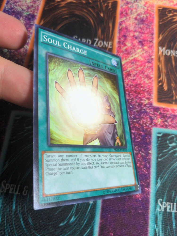 | Card Text | Target any number of monsters in your Graveyard; Special Summon them, and if you do, you lose 1000 Life Points for each monster Special Summoned by this effect. You cannot conduct your Battle Phase the turn you activate this card. You can only activate 1 "Soul Charge" per turn. |
