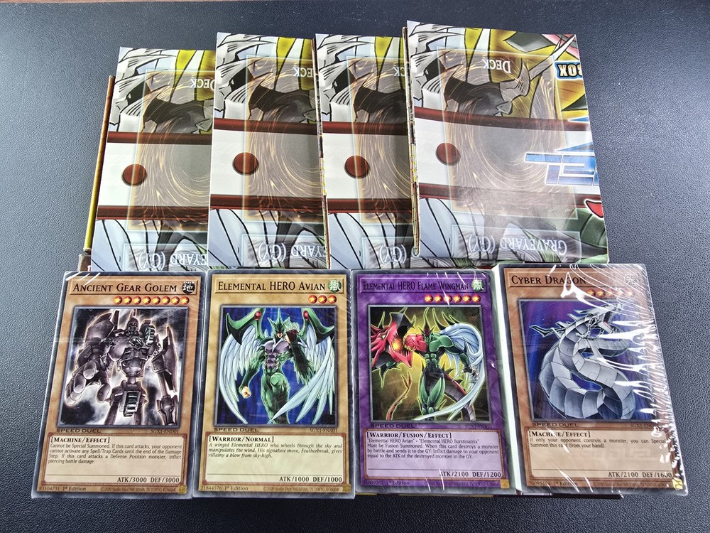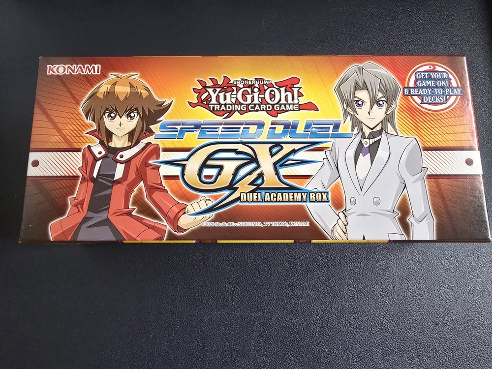 No secret rare pack. This box includes 8 Speed duel decks and skill cards. Step into the Duel Academy with the Speed Duel GX: Duel Academy Box, a must-have for any Yu-Gi-Oh! TCG enthusiast. This set features the beloved characters Jaden and Chazz, providing fans with an immersive experience. The box includes 8 Speed Duel Decks, perfect for both seasoned players and those new to the game. Fast handling. Tracking number included. Ships from America. Check photos for more detailed information. If you want more photos send me a message. Yes, I can combine shipping if you buy multiple items from me. Before paying, request a total first. If you have any questions, please feel free to send me a message. No returns. No refunds. No exchanges.