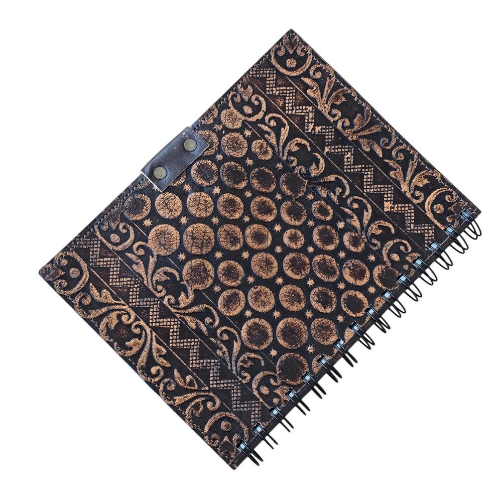 Delve into the charm of vintage aesthetics with our Artistic Print Journal, a timeless piece that invites introspection and creativity. Crafted with care in India, this journal features a sleek leather cover that exudes a classic charm, complemented by a unique metal closure that adds a touch of sophistication to its design. The journal offers a generous 200 pages of unlined paper, ideal for jotting down thoughts, sketches, or ideas. Its size and layout are perfectly balanced for both portability and comfort, making it the perfect companion for writers, artists, and enthusiasts of traditional craftsmanship. Size - Lenght - 6in Height - 8in Width - 1in